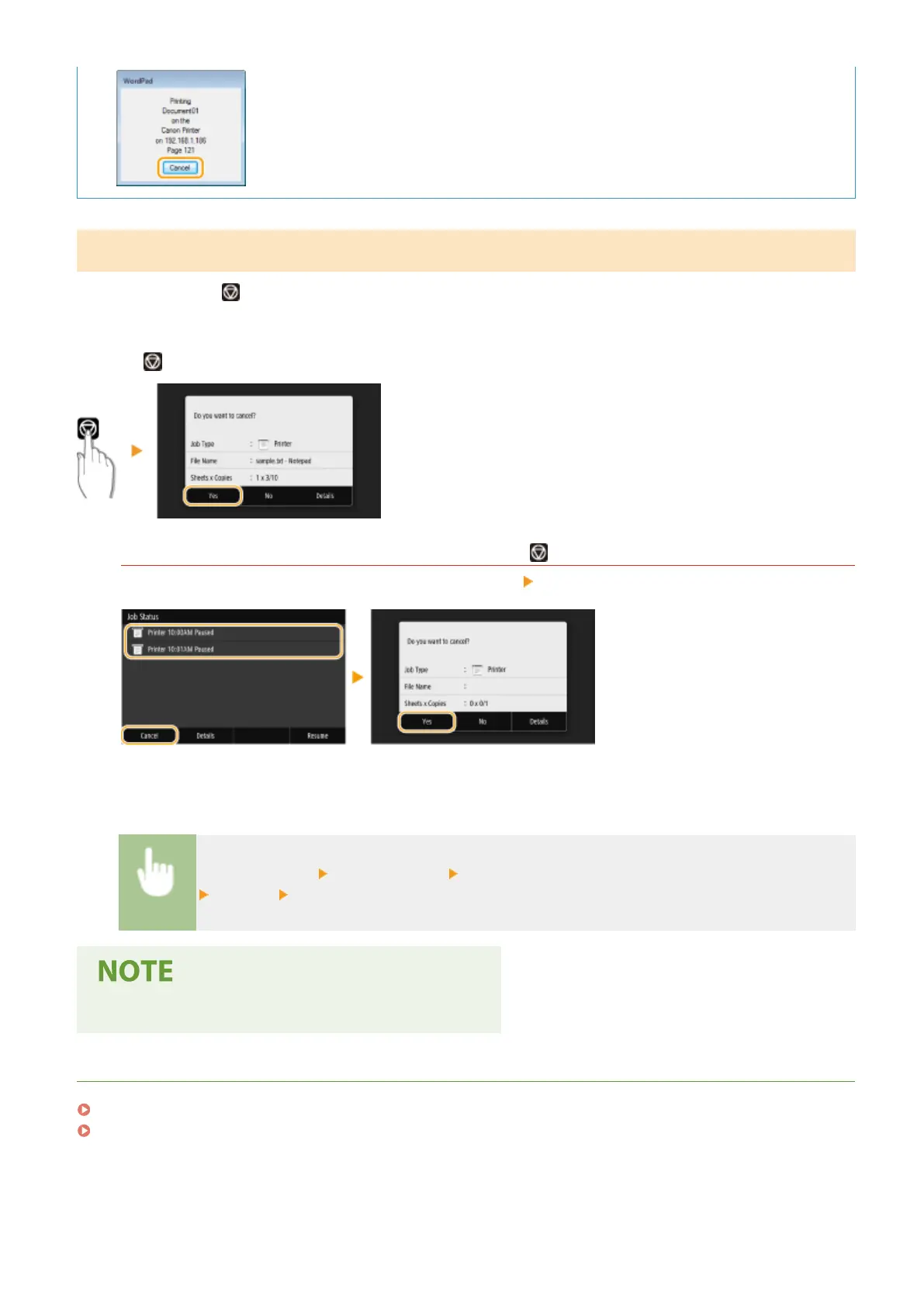 ● Several pages may be output after you cancel printing.