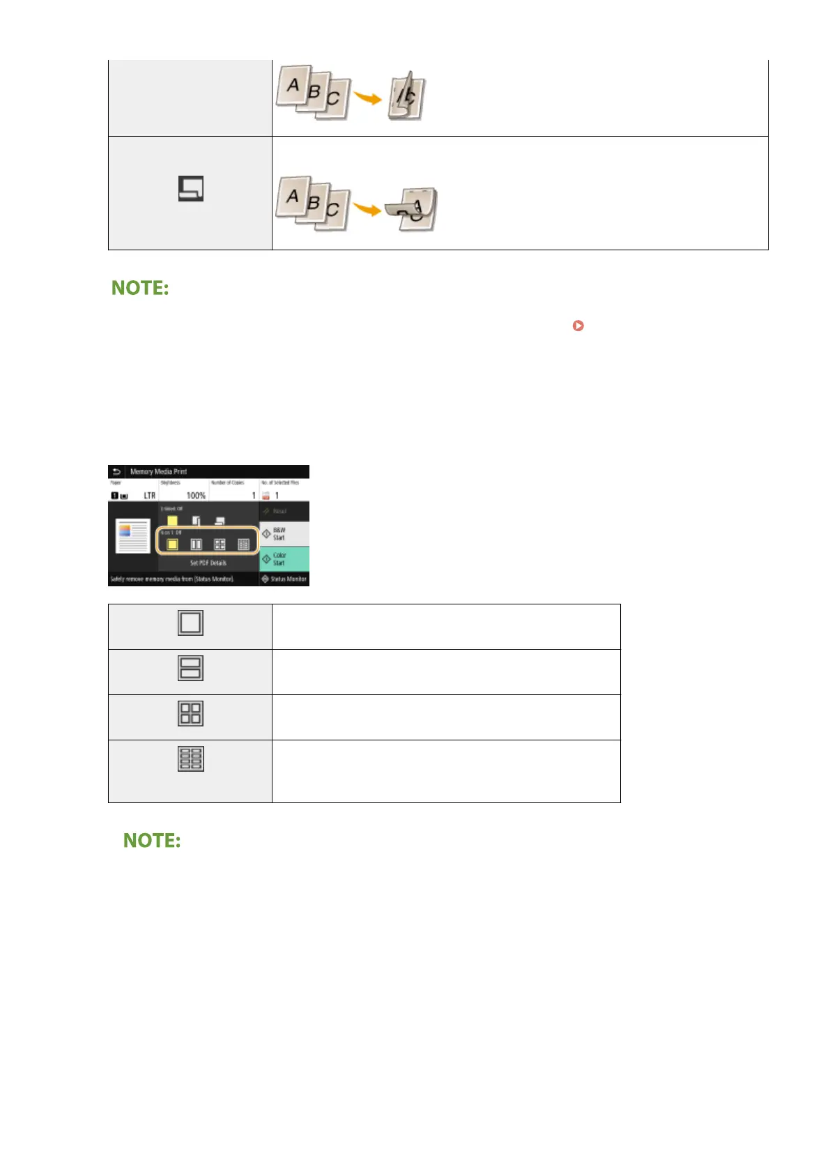 For a PDF le, you can print 9 or 16 pages of image data on one side of a sheet of paper by using <N on 1>