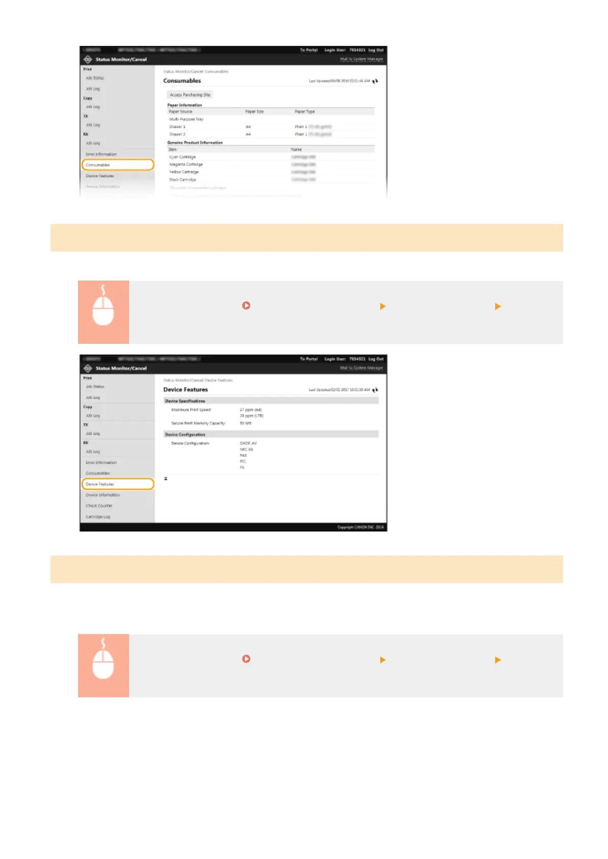 Log in to the Remote UI ( Starting Remote UI(P. 419) ) [Status Monitor/Cancel] [Device