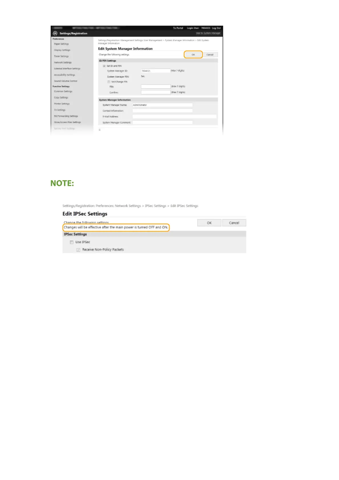 For information about whether you need to restart the machine, view the message on the edit screen.