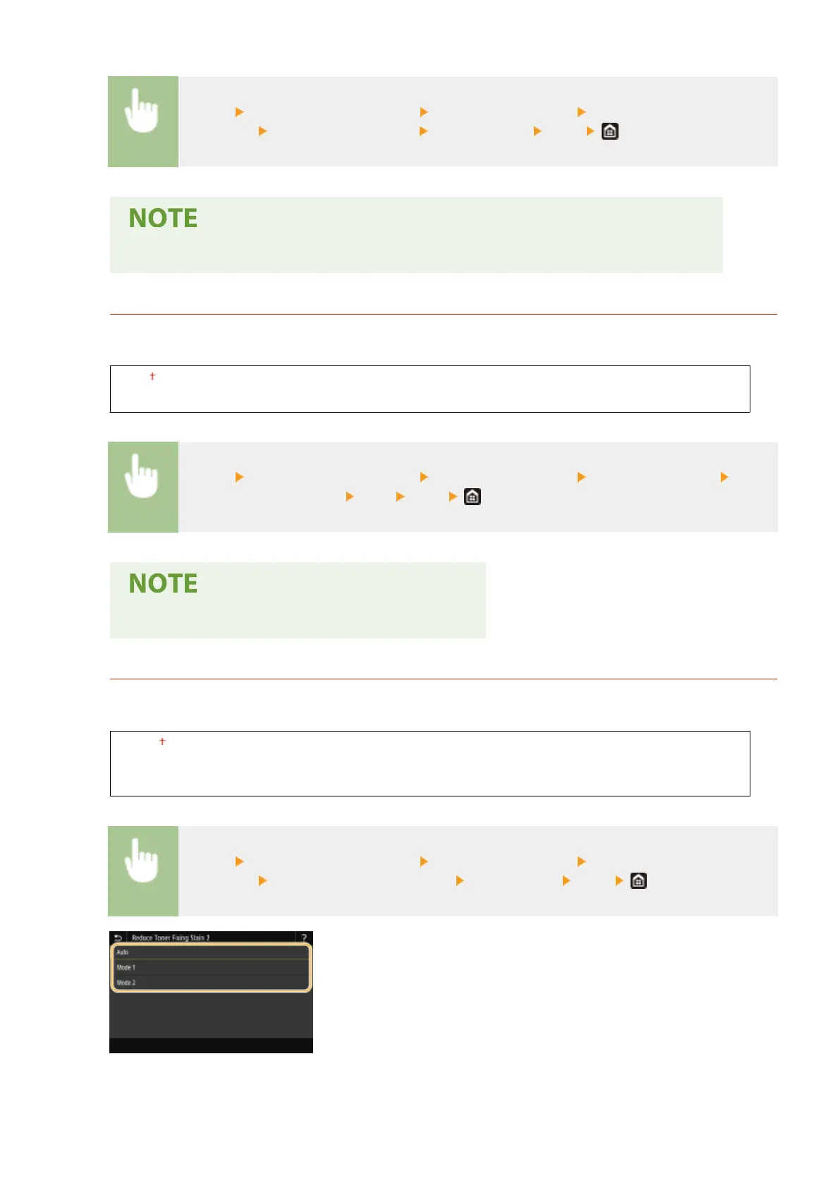 Processing> <Reduce Toner Fixing Stain 2> Select the item <Yes>