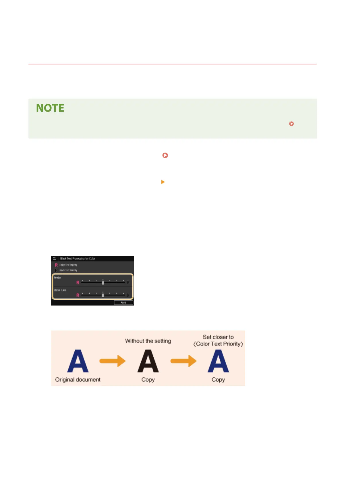 If copy results of black or blackish text are not satisfactory, you can improve the color reproducibility with this