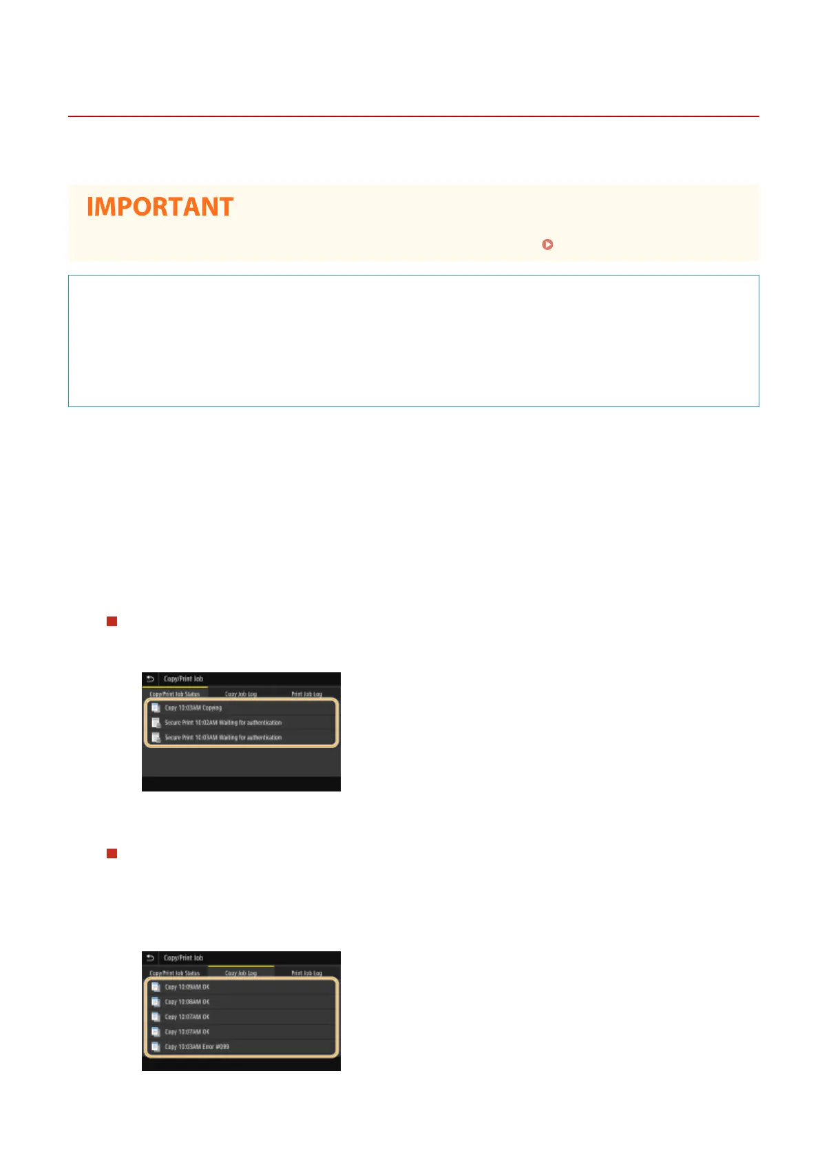 When <Display Job Log> is set to <Off>, you cannot check the copy job log. <Display Job Log>(P. 566)