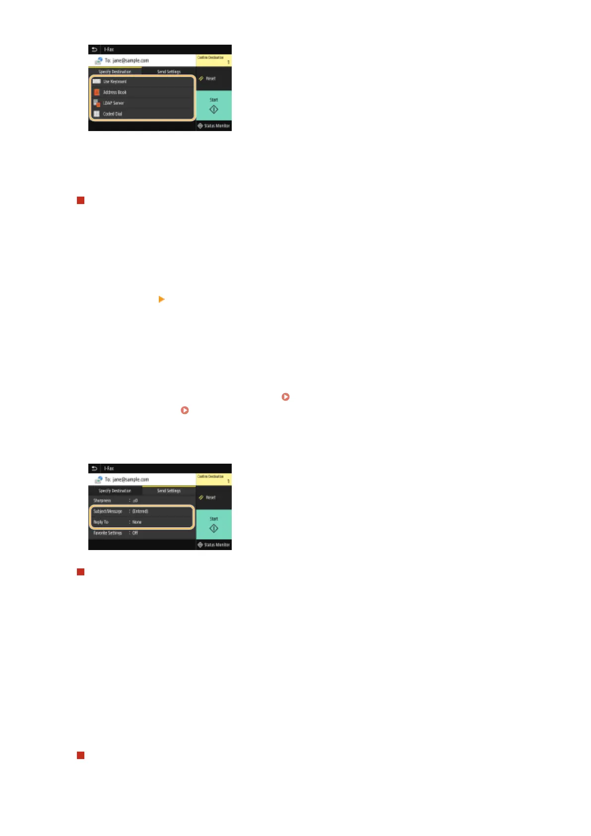 ● For more information about each setting, see Sending Data by E-Mail/Saving Data to a Shared Folder or