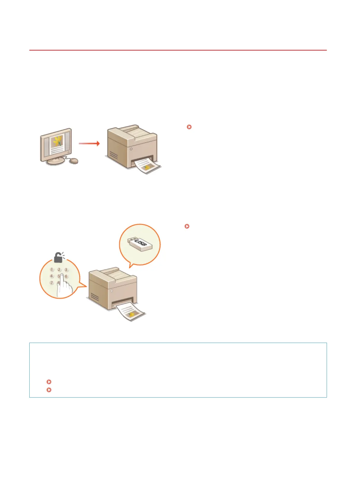 You can assign a PIN to the print data to enhance security or directly print les stored in a USB memory device.