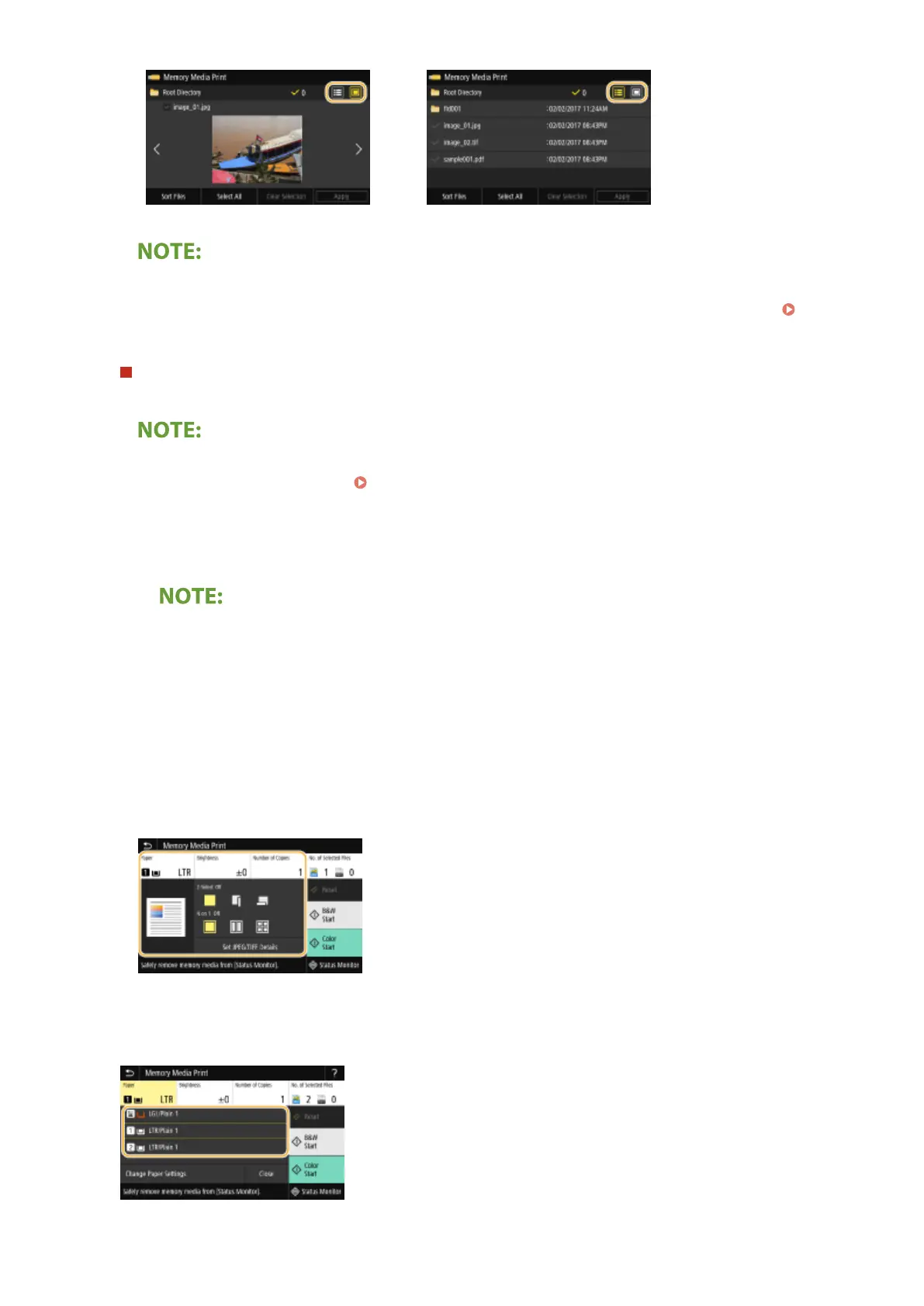 You can specify the le display method used to display the <Memory Media Print> screen. <Default