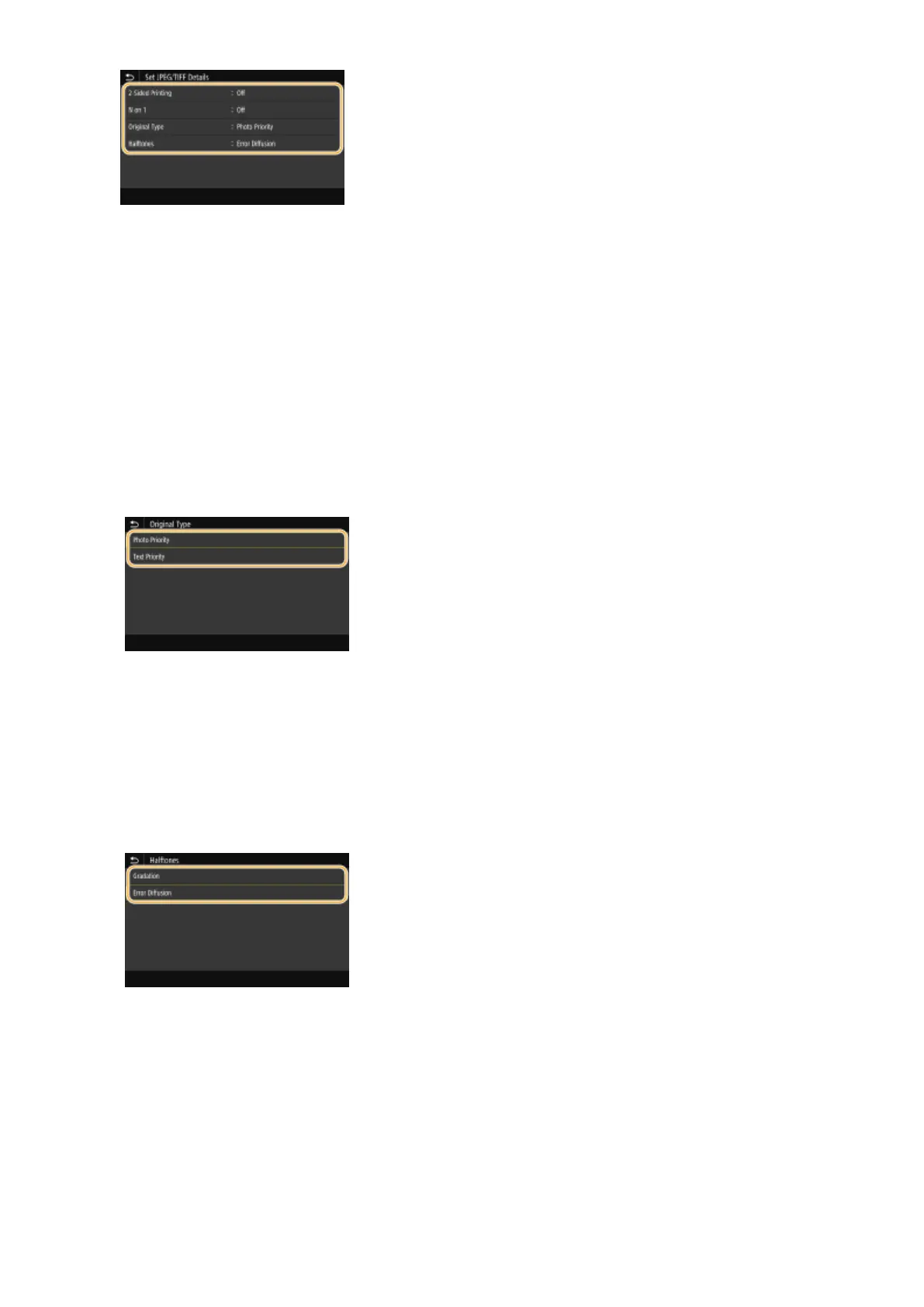 You can select the printing method used to reproduce halftones (the intermediate range between the lighter