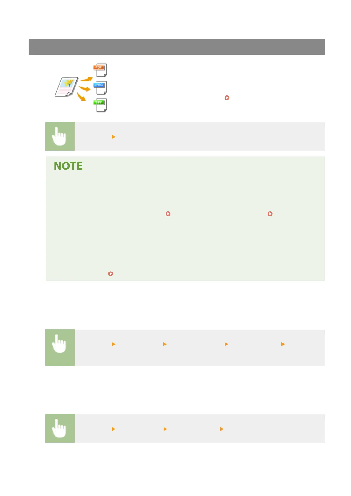 You can select the le format to which originals are scanned from PDF/JPEG/TIFF.