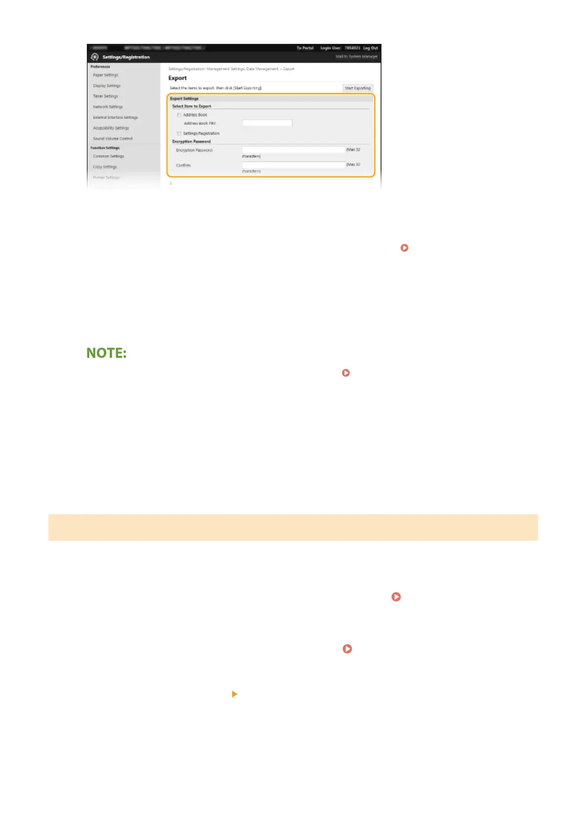 The password is required when exported data is imported. Importing the Setting Data(P. 435)