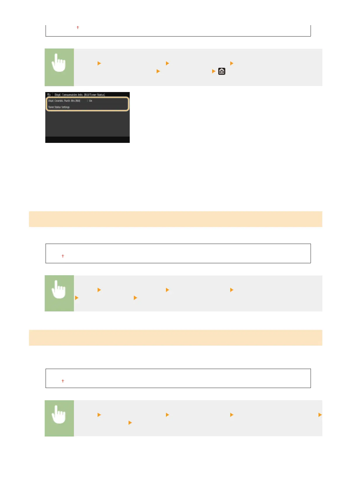 If you do not want to use Toner Status, select <Off>. To prevent a button that accesses sites for purchasing