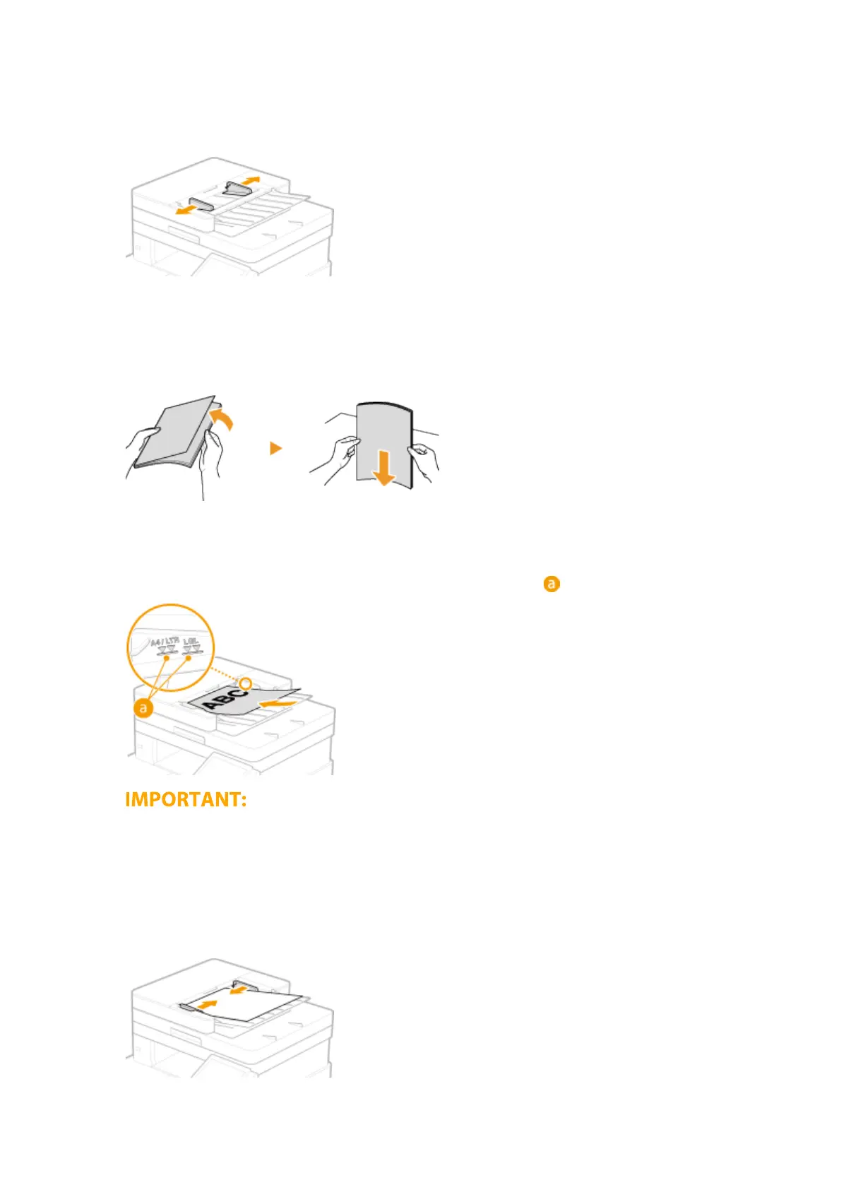 ● Slide the slide guides inward until they are aligned securely against the edges of the original.