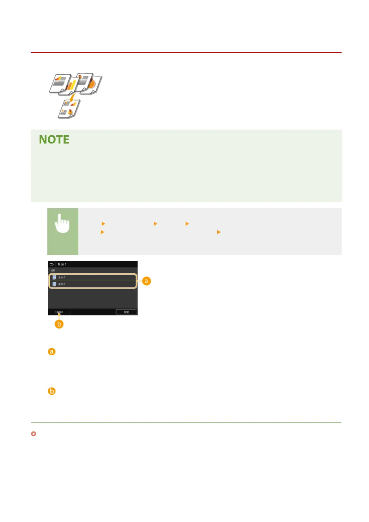 <Copy> <Other Settings> <N on 1> Select the number of pages to be combined, and select