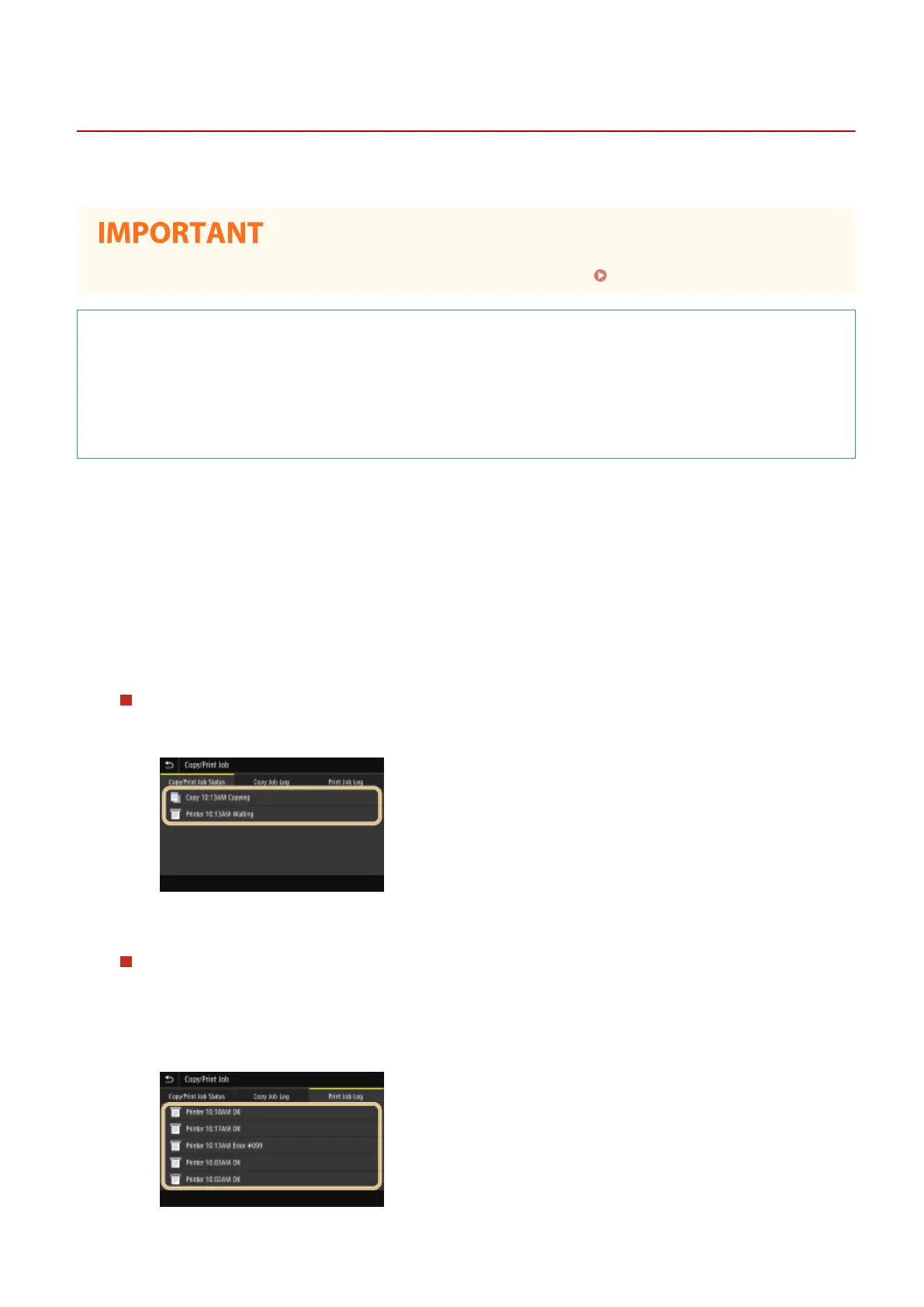 When <Display Job Log> is set to <Off>, you cannot check the print logs. <Display Job Log>(P. 566)