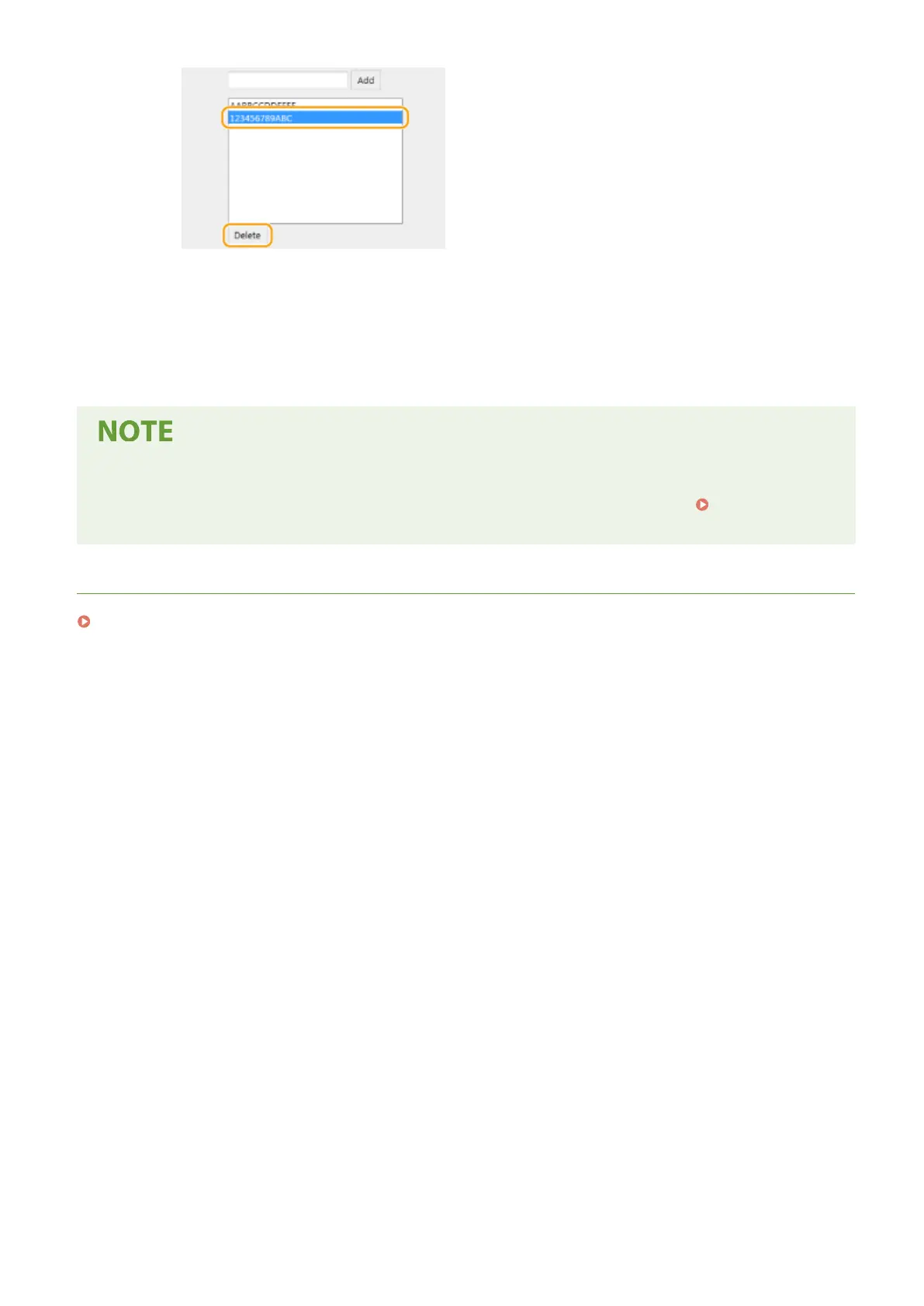 You can also enable or disable MAC address ltering from <Menu> in the Home screen. <MAC Address