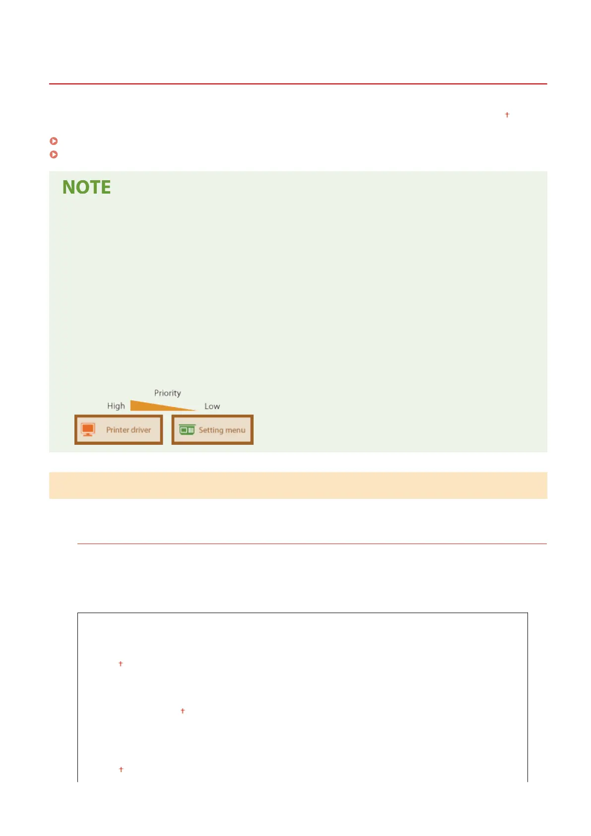 taking priority over the settings made for each paper source under <Paper Settings> in the Home screen. By
