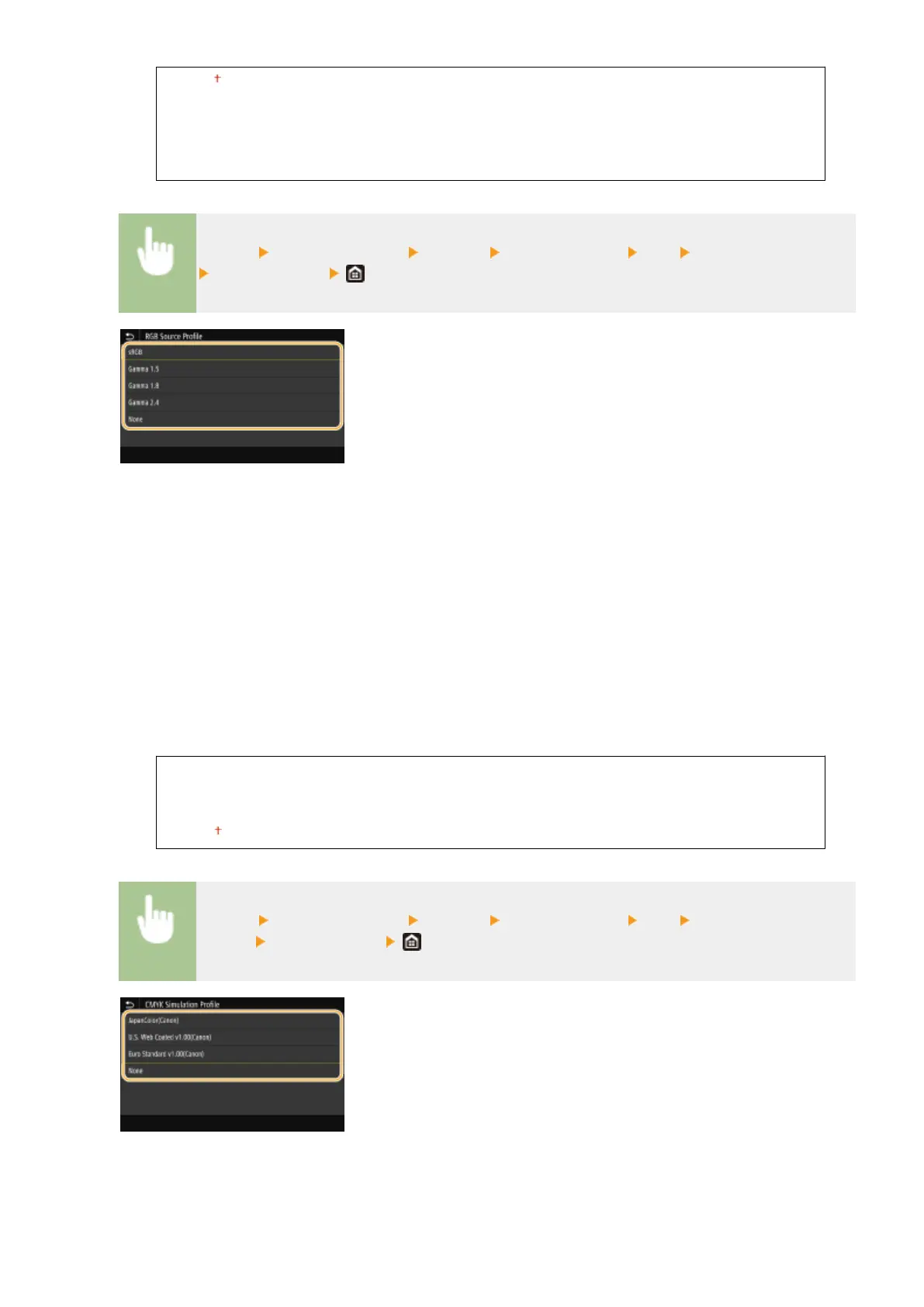 <Menu> <Function Settings> <Printer> <Printer Settings> <PS> <RGB Source Prole>