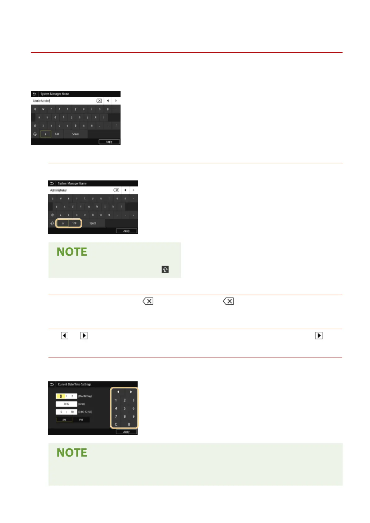 When entering text or a number, use the keyboard displayed on the screen. The numeric keys are displayed on the