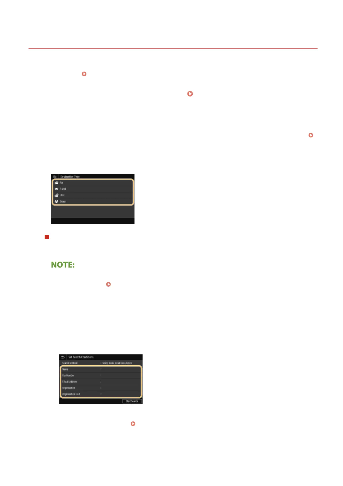 ● Name, fax numbers, e-mail addresses, organization names, and organization unit are available criteria