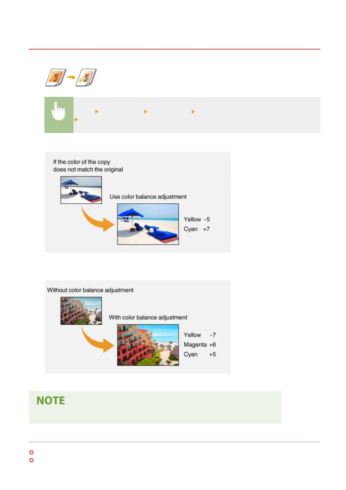 <Copy> <Other Settings> <Color Balance> Select the color, and adjust the color level