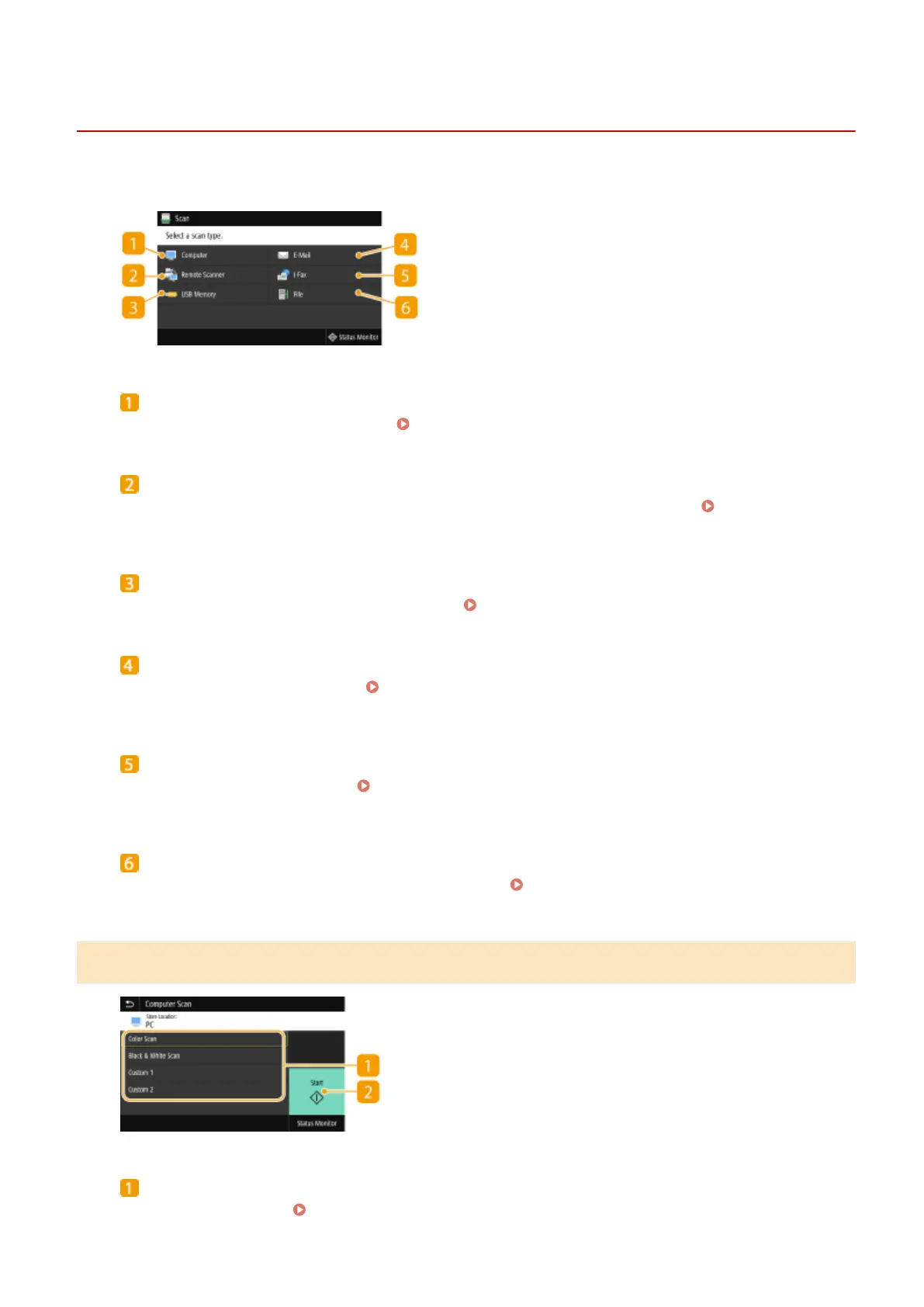 Saves the scanned data to a computer. Basic Features Screen for Computer Scanning(P. 281)