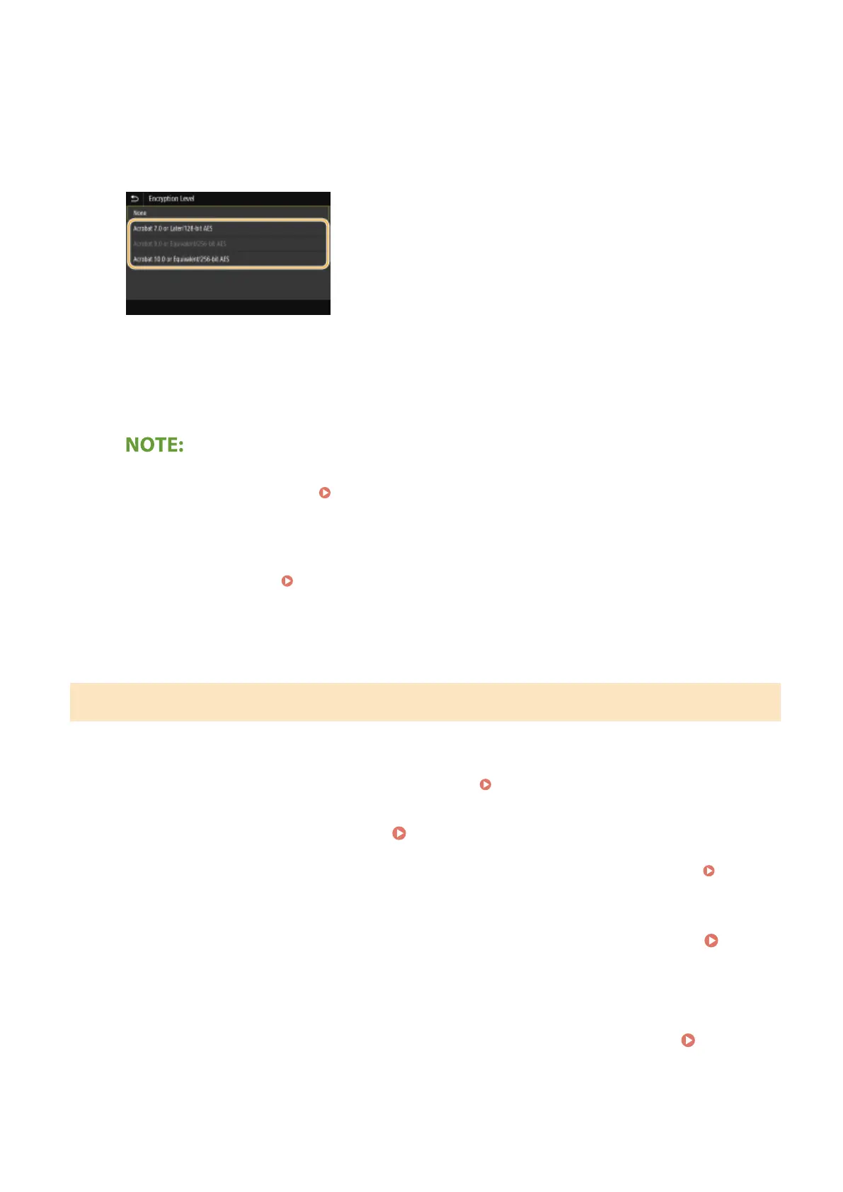● <Acrobat 10.0 or Equivalent/256-bit AES> can be changed to <Acrobat 9.0 or Equivalent/256-bit AES> with a
