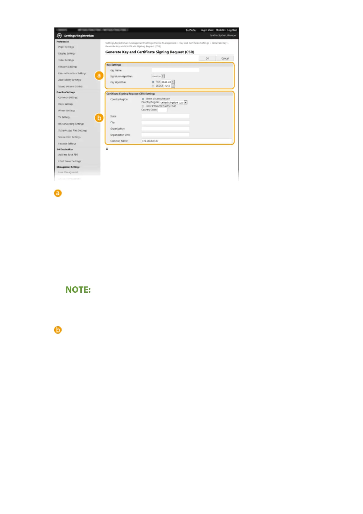● When [SHA384] or [SHA512] is selected in [Signature Algorithm], [512-bit] cannot be selected as the