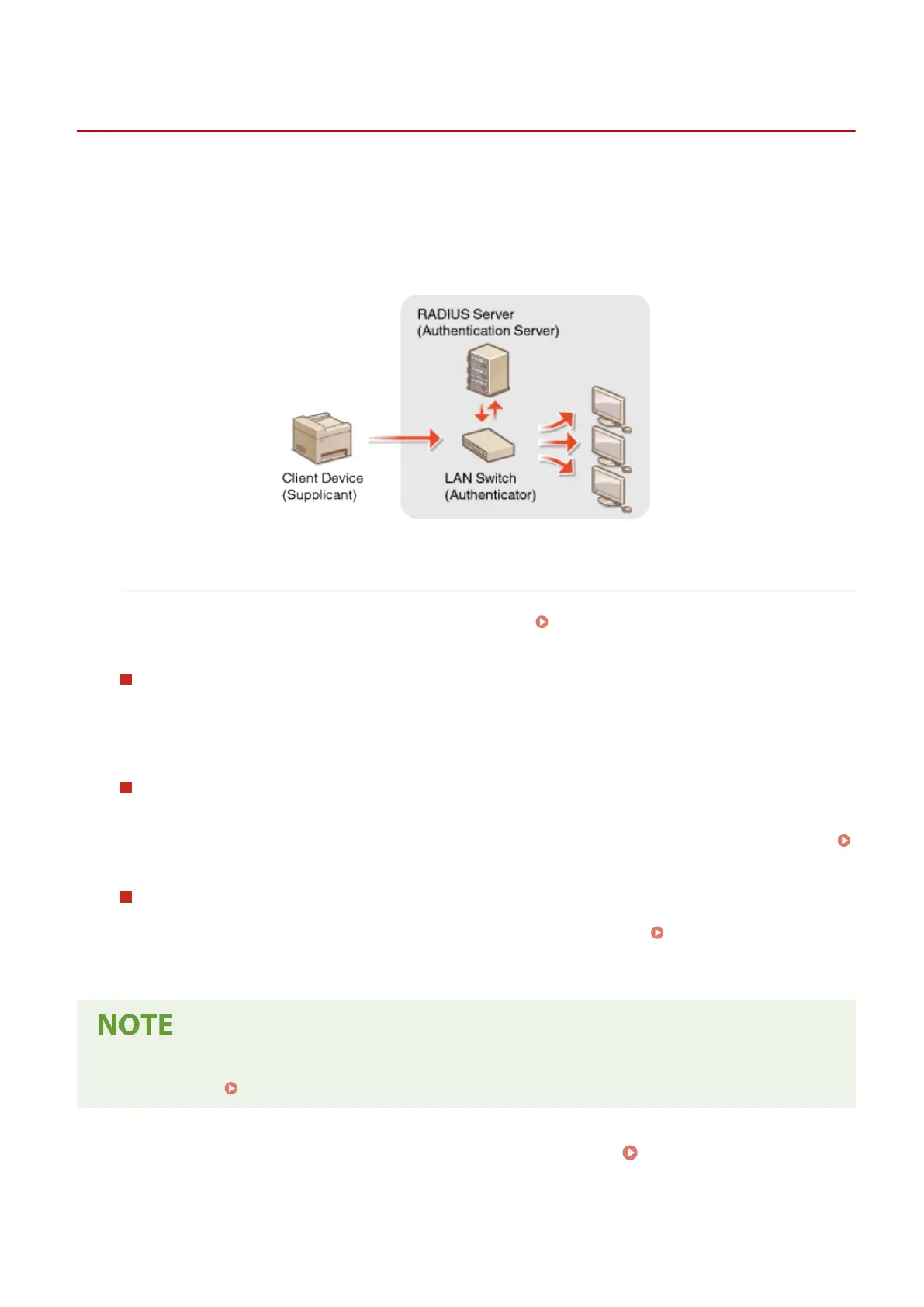 The machine can connect to an 802.1X network as a client device. A typical 802.1X network consists of a RADIUS server