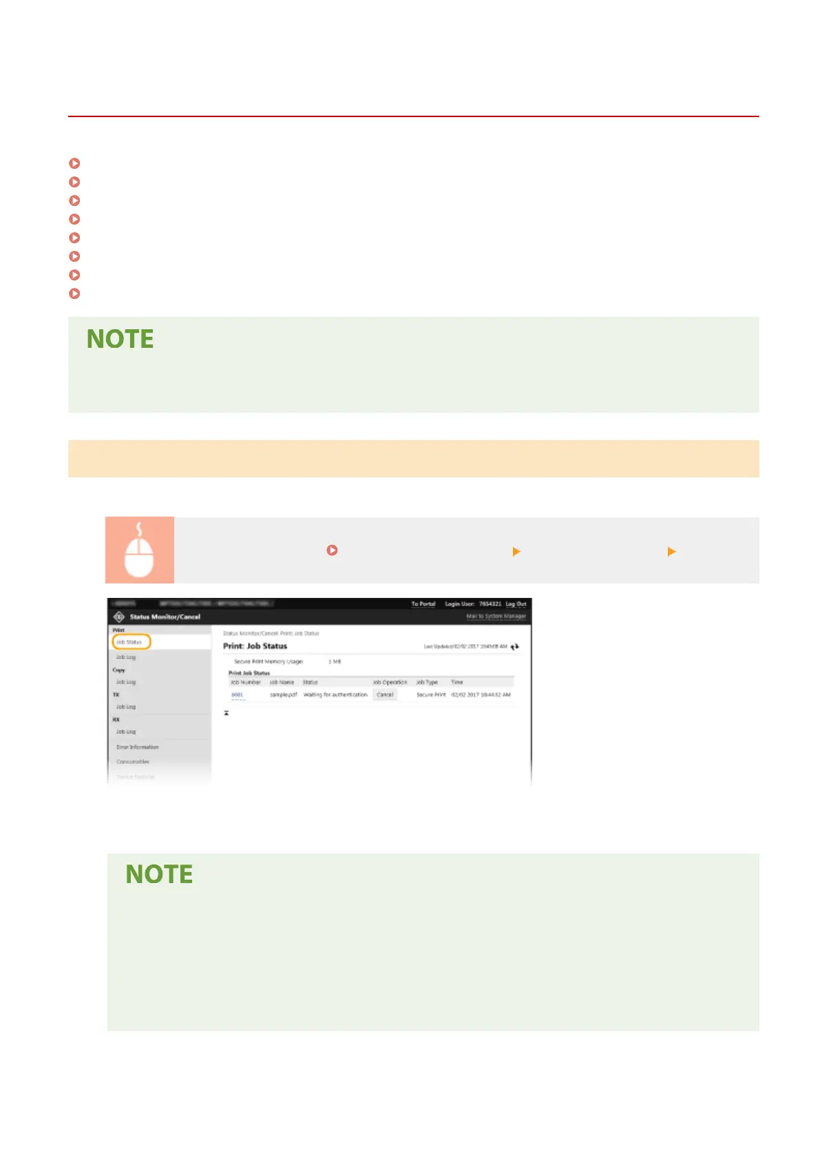 Log in to the Remote UI ( Starting Remote UI(P. 419) ) [Status Monitor/Cancel] [Job Status]