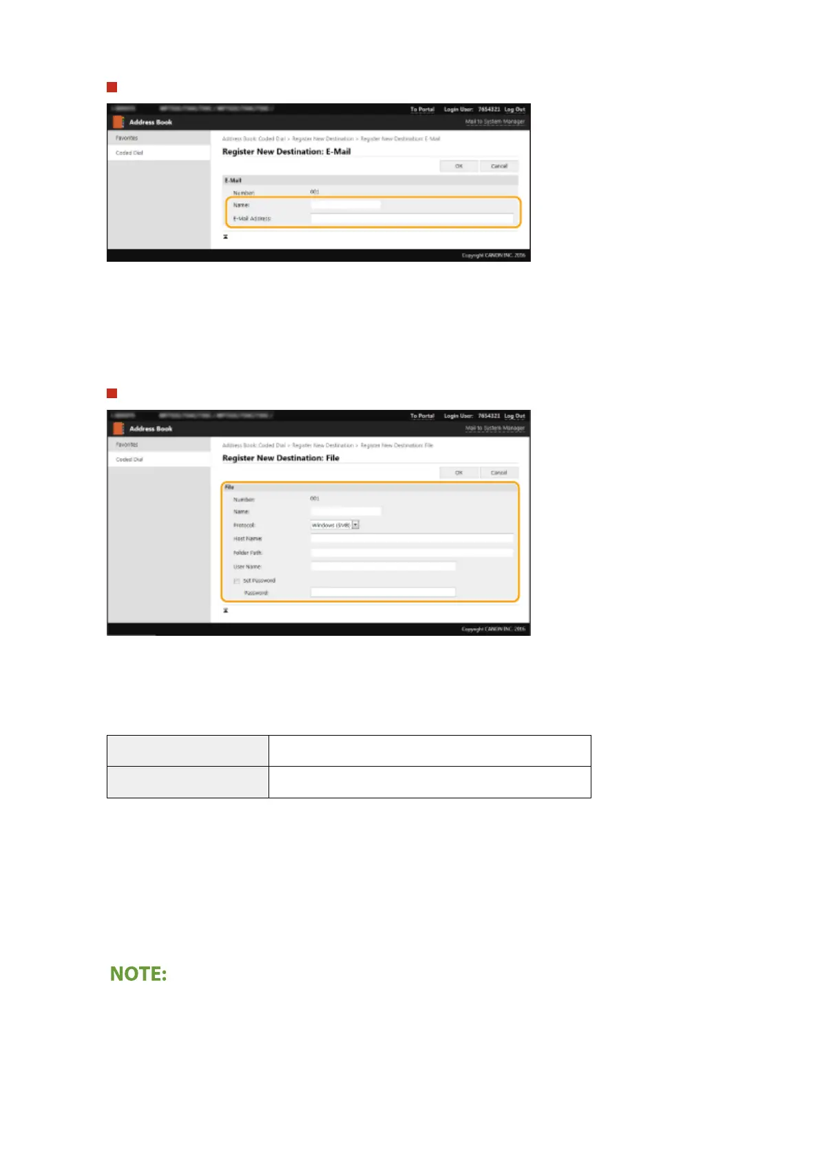 To register the shared folder or FTP server destination