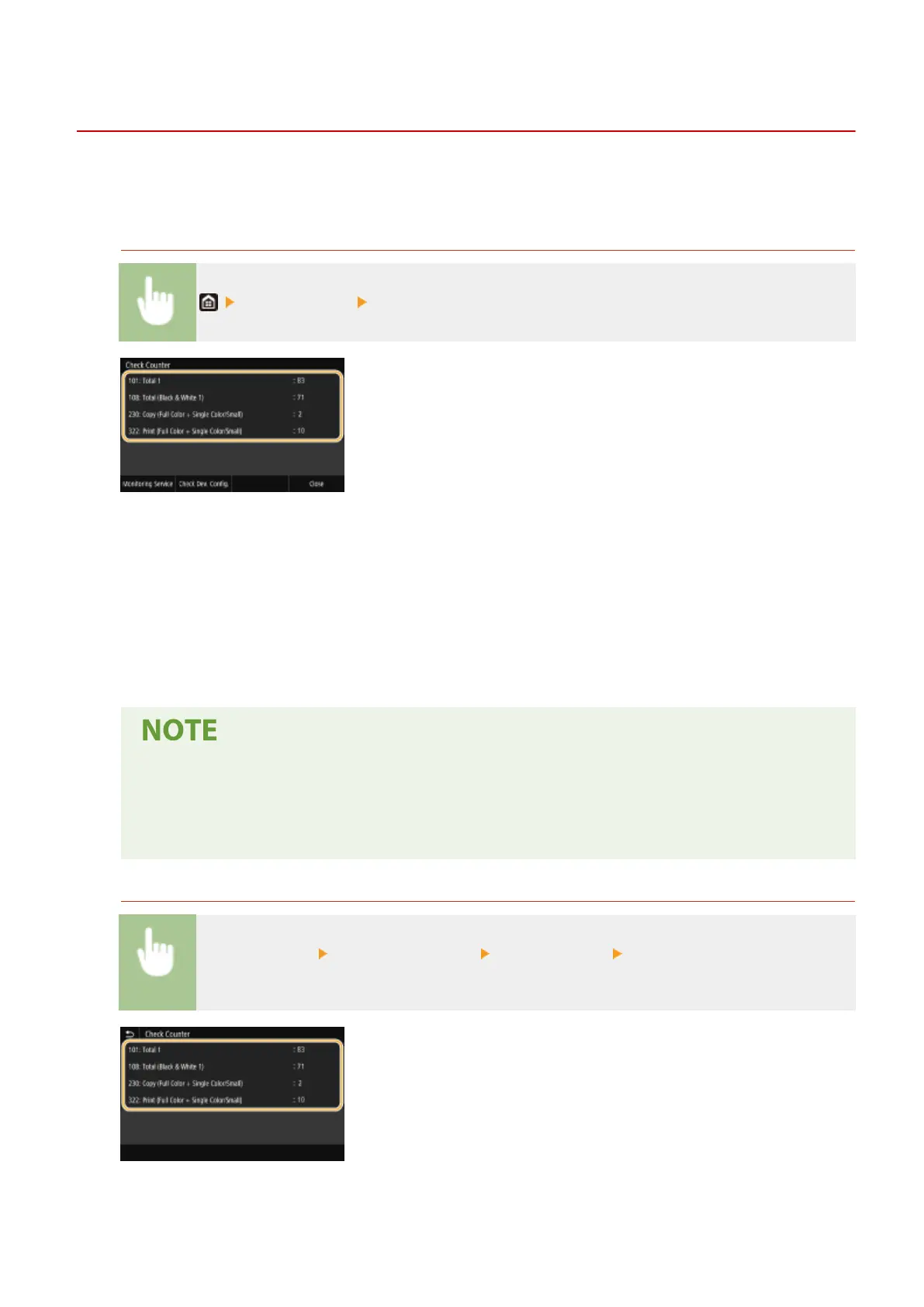 <Status Monitor> <Device Information> <Check Counter> Check the number of pages