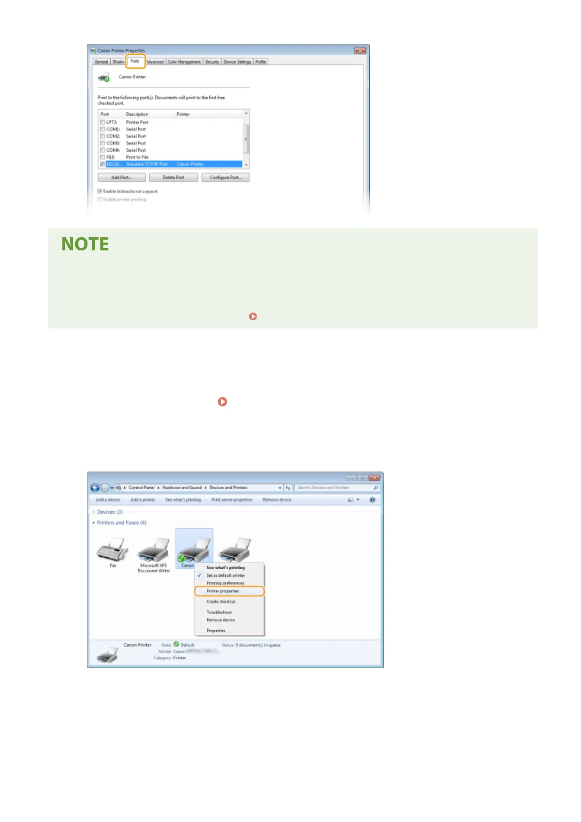 TCP/IP Port], you need to add a new port. Conguring Printer Ports(P. 43)