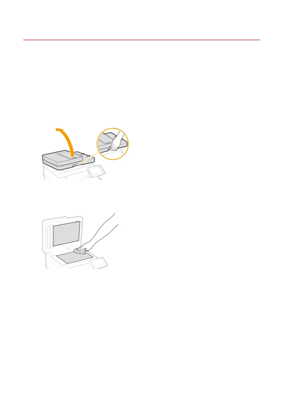 Regularly wipe off the dust from the platen glass and the underside of the feeder to prevent smudges to be printed on