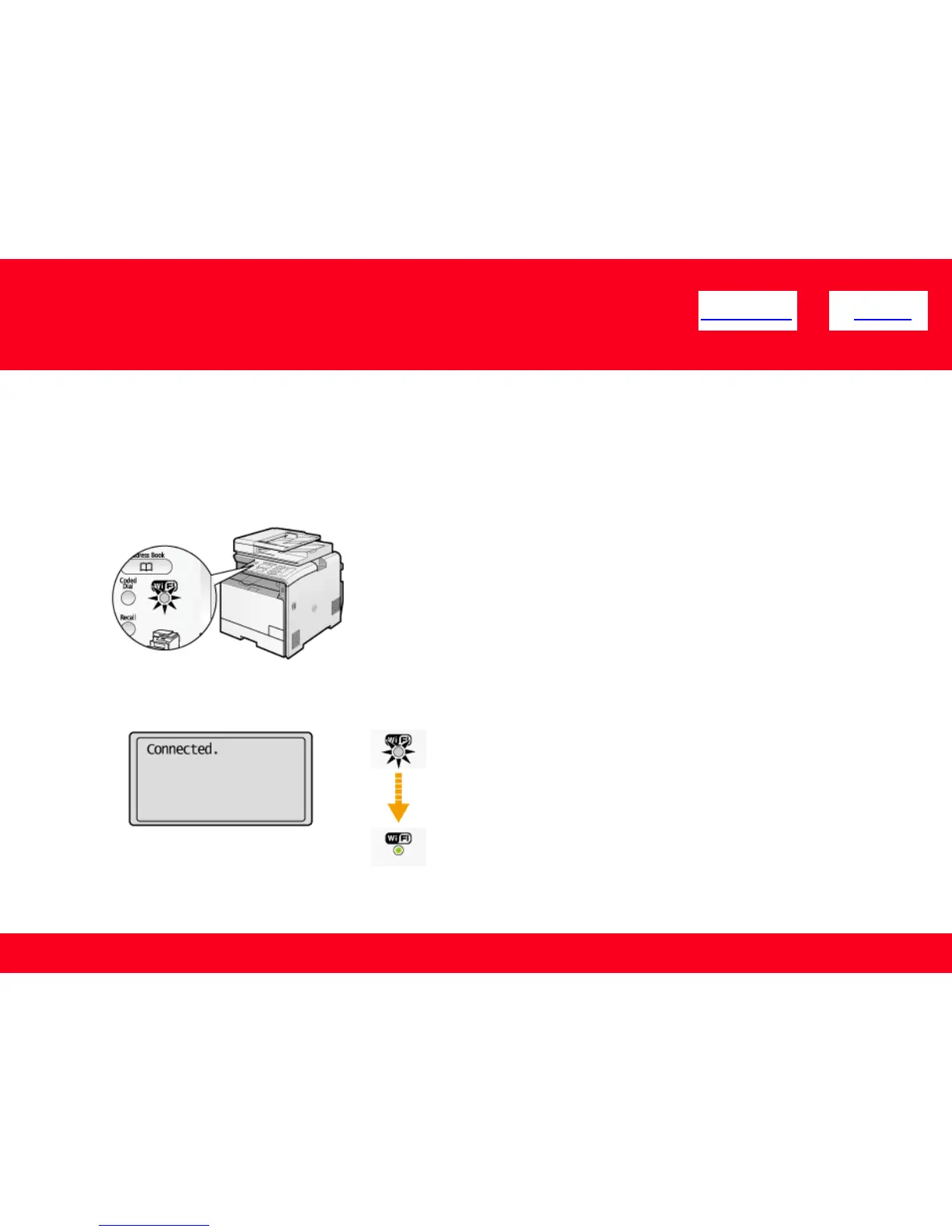 The screen below is displayed for approximately 2 seconds, and then the Wi-Fi indicator will remain solidly lit.