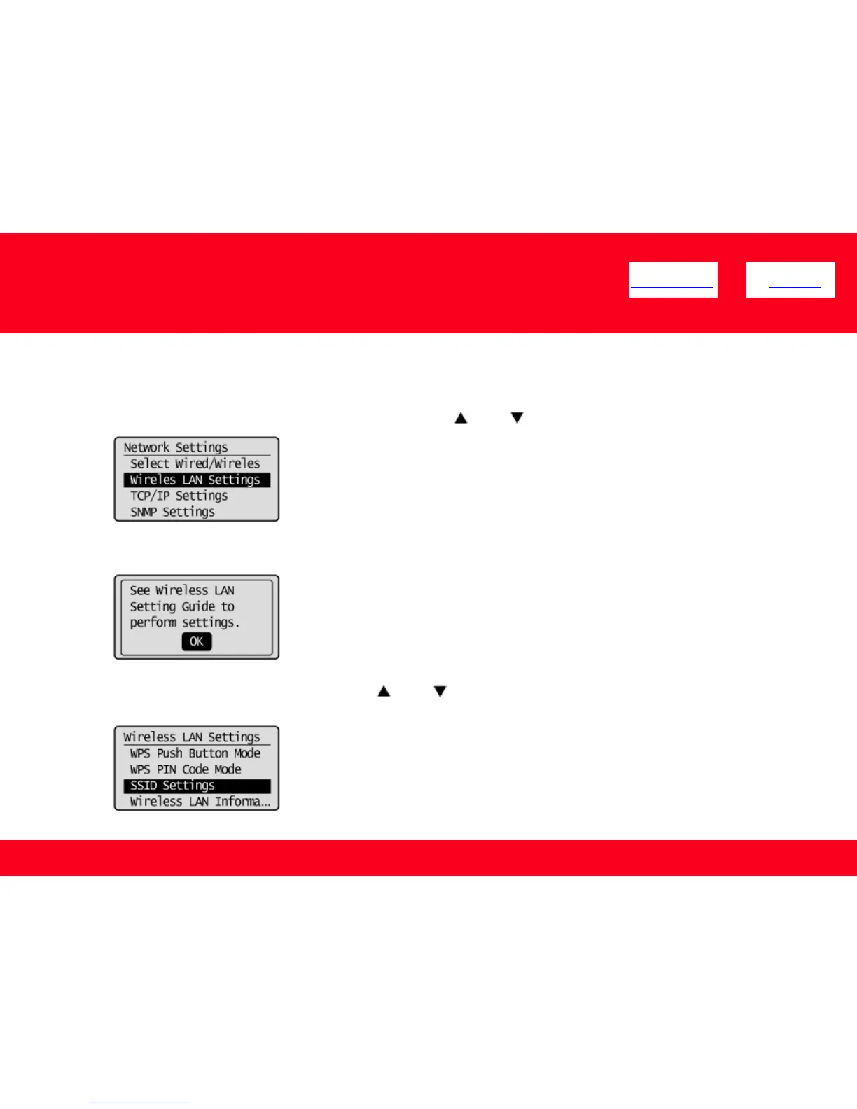 3. Select <Wireless LAN Settings> using [ ] or [ ] and press [OK].