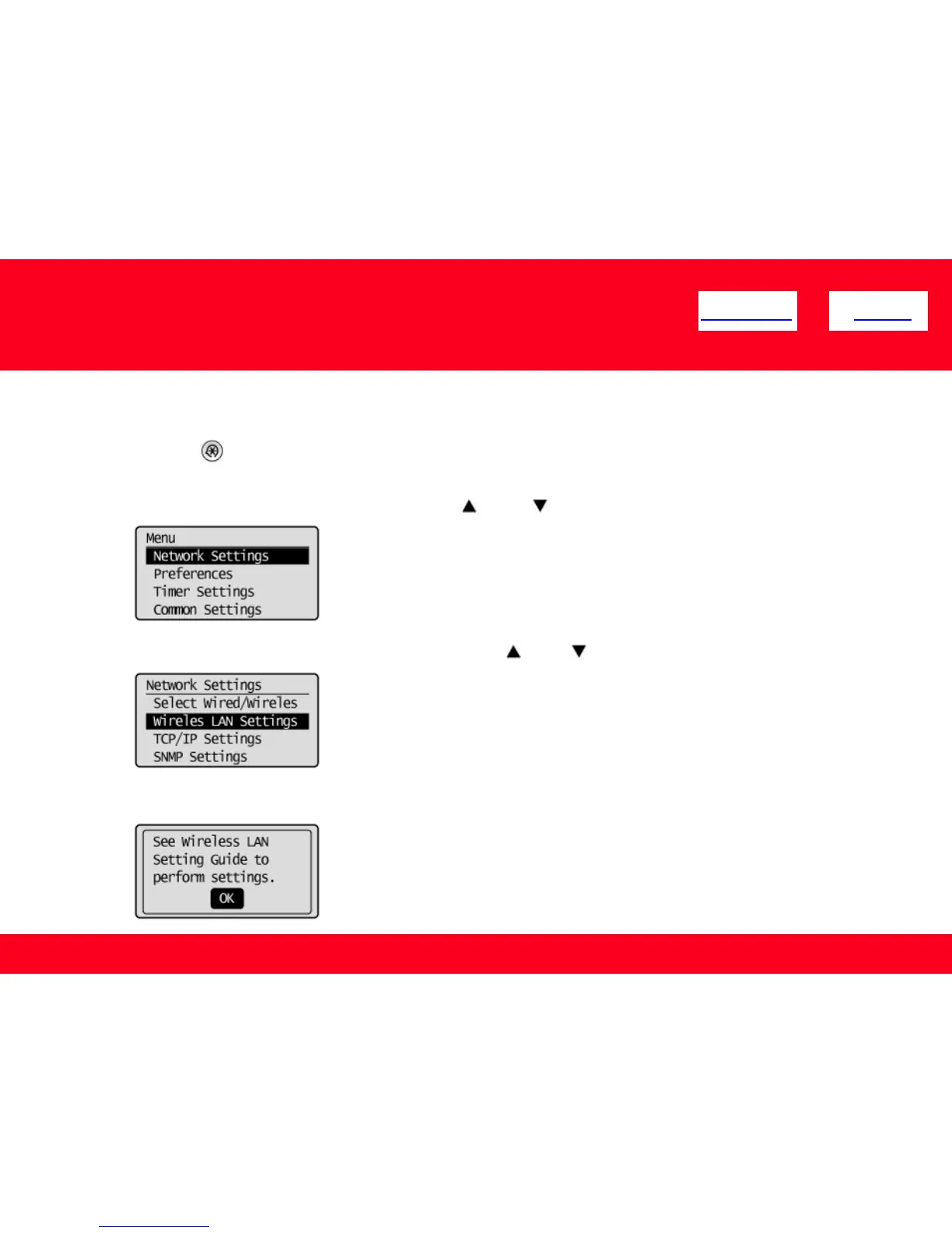 3. Select <Wireless LAN Settings> using [ ] or [ ], and then press [OK].