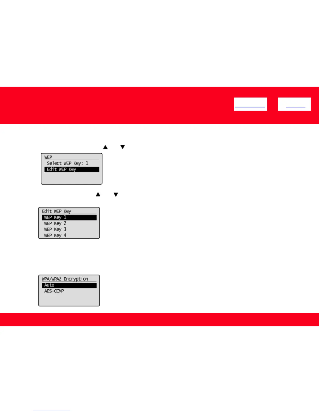 3. Select the WEP key using [ ] or [ ] , and then press [OK].