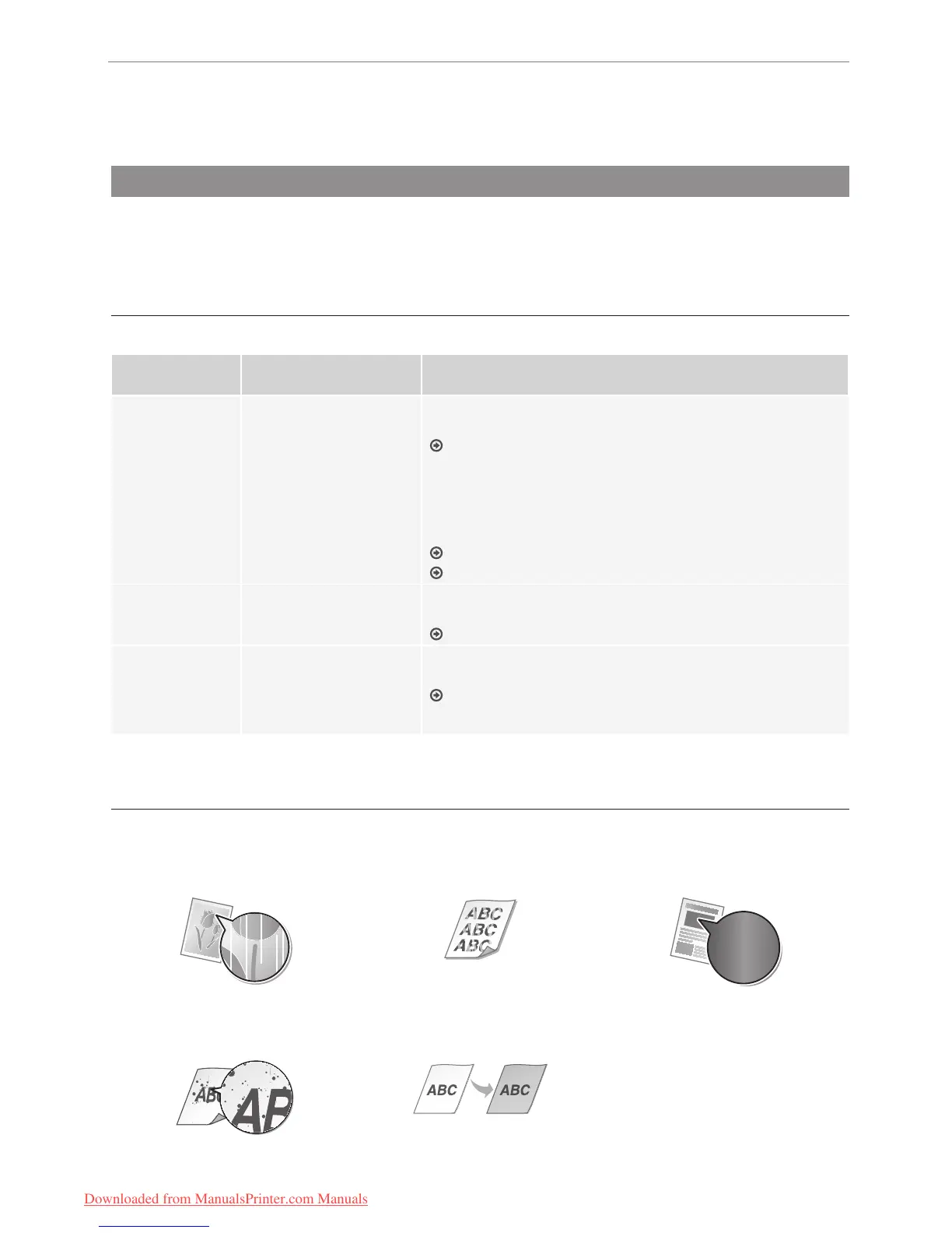 If your printouts begin to show any of the following features, one of your toner cartridges is nearly empty. Replace