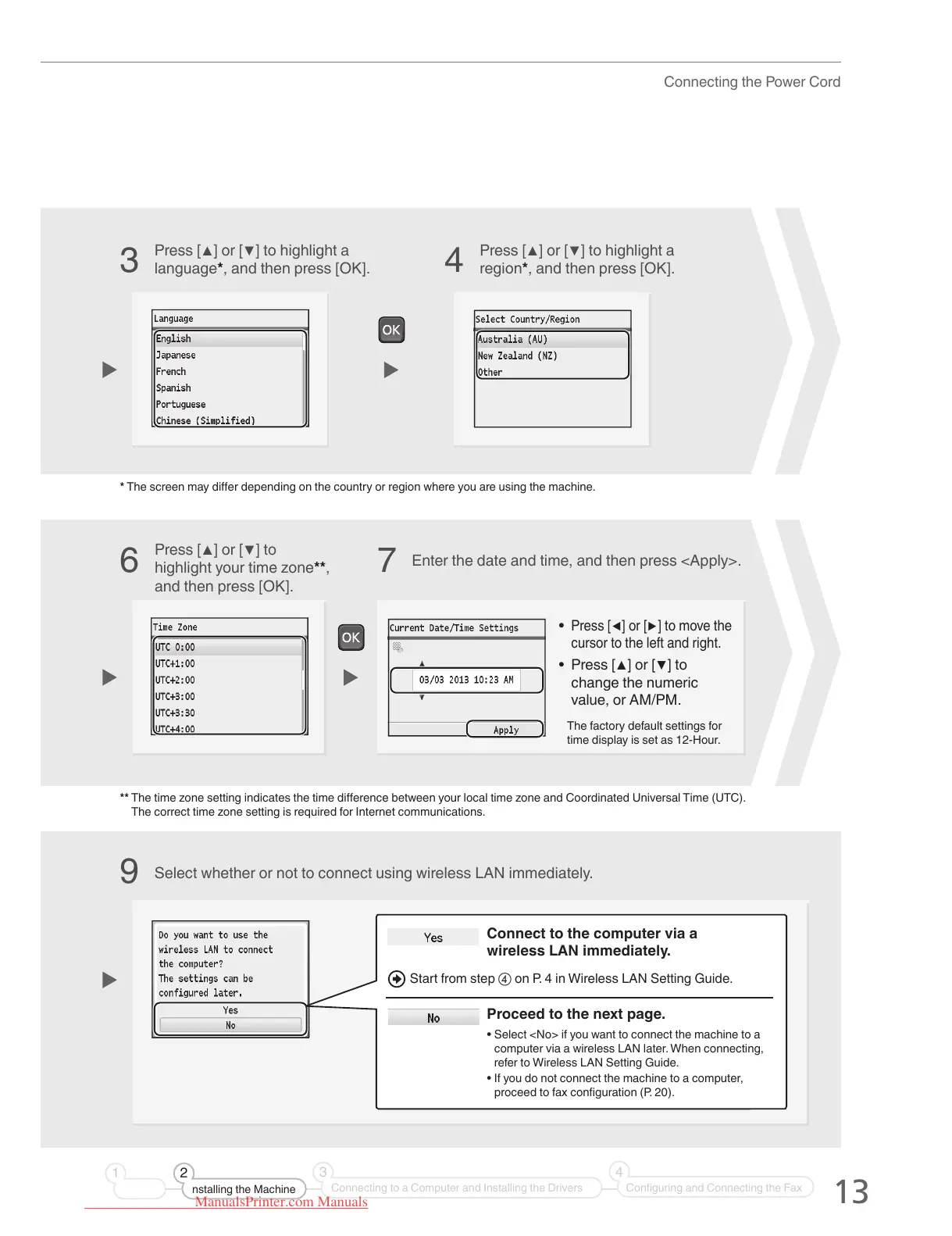 * The screen may dier depending on the country or region where you are using the machine.