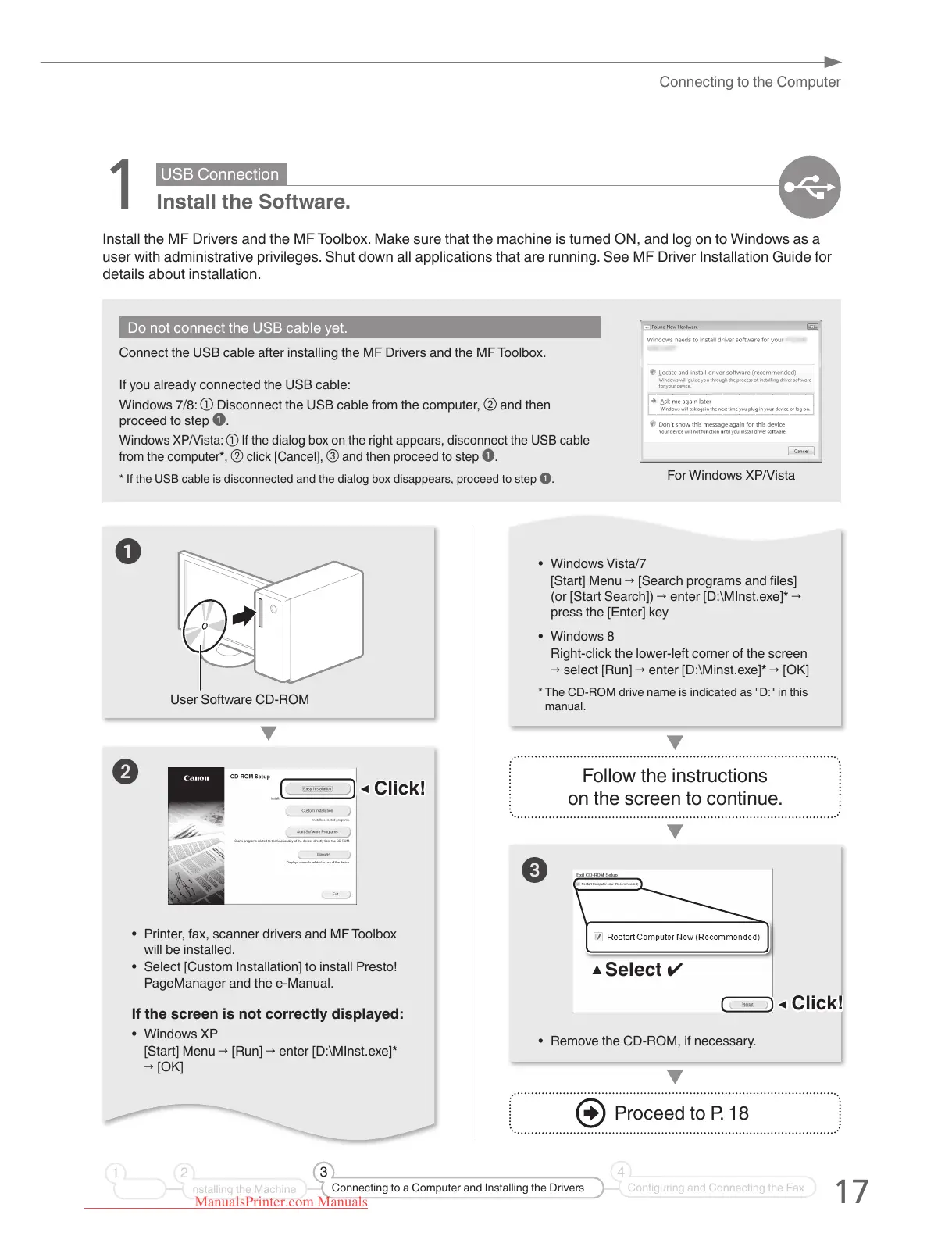 user with administrative privileges. Shut down all applications that are running. See MF Driver Installation Guide for