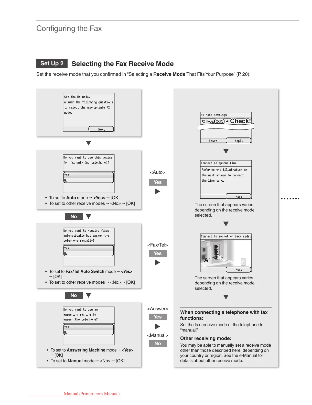 • To set to other receive modes → <No> → [OK]