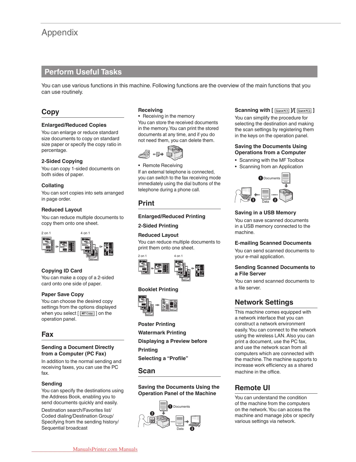 You can use various functions in this machine. Following functions are the overview of the main functions that you