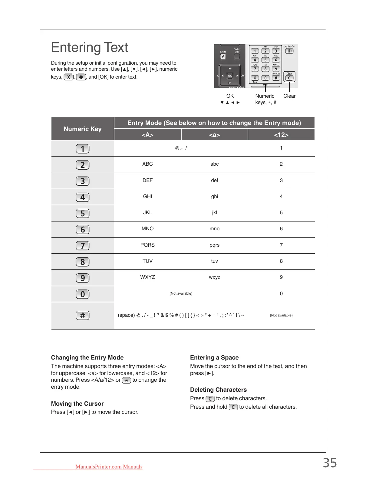 The machine supports three entry modes: <A>