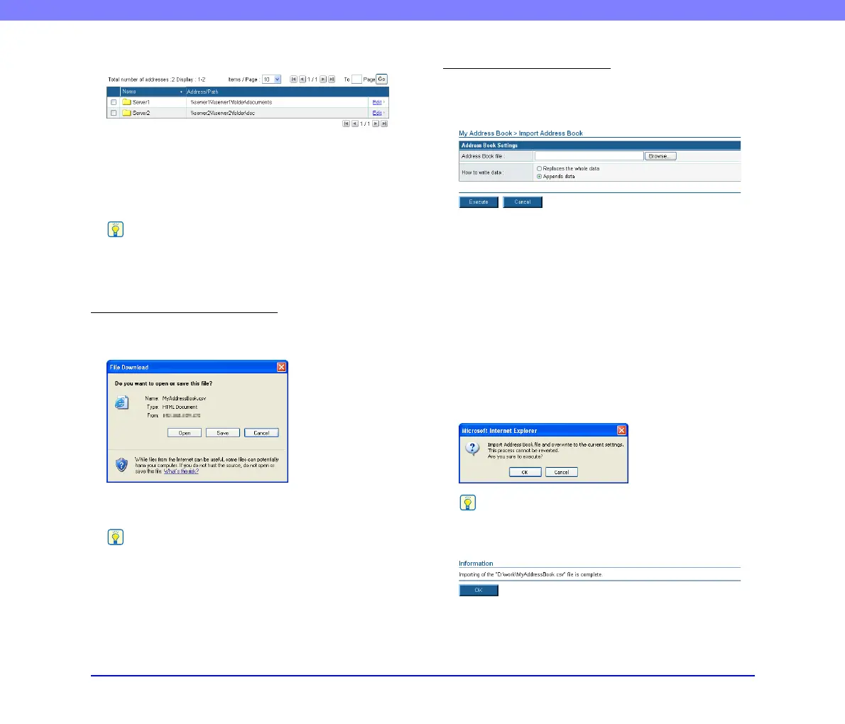• Appends data: Adds the imported address book data to