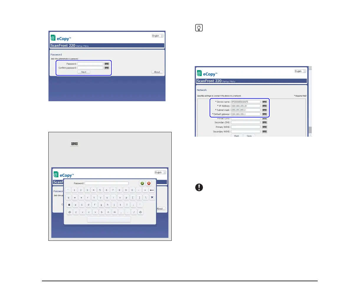 3. Configure network settings for the device.