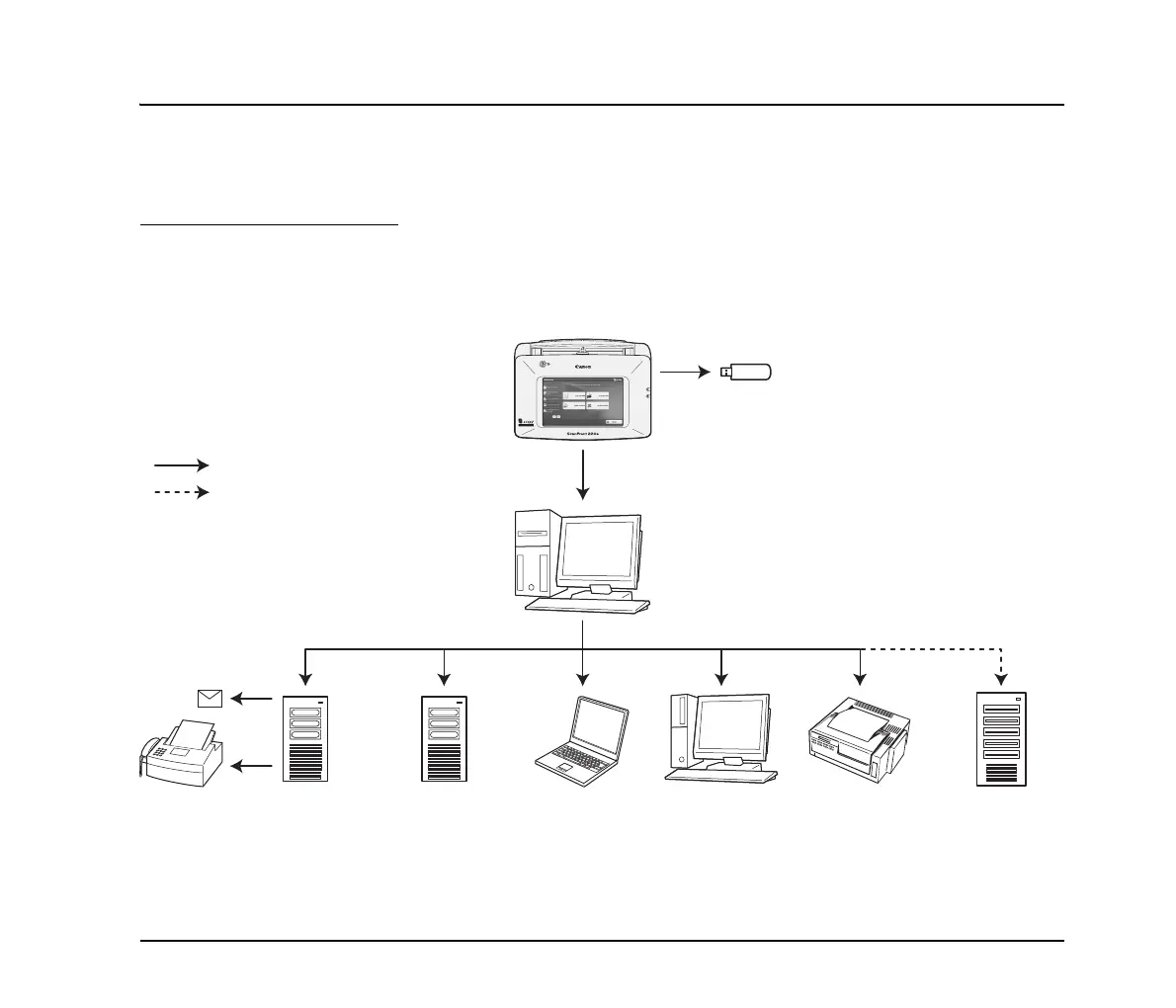 Server (SMTP/Notes), FTP Server, Printer, Fax (via Email), or USB flash drive attached to the device.