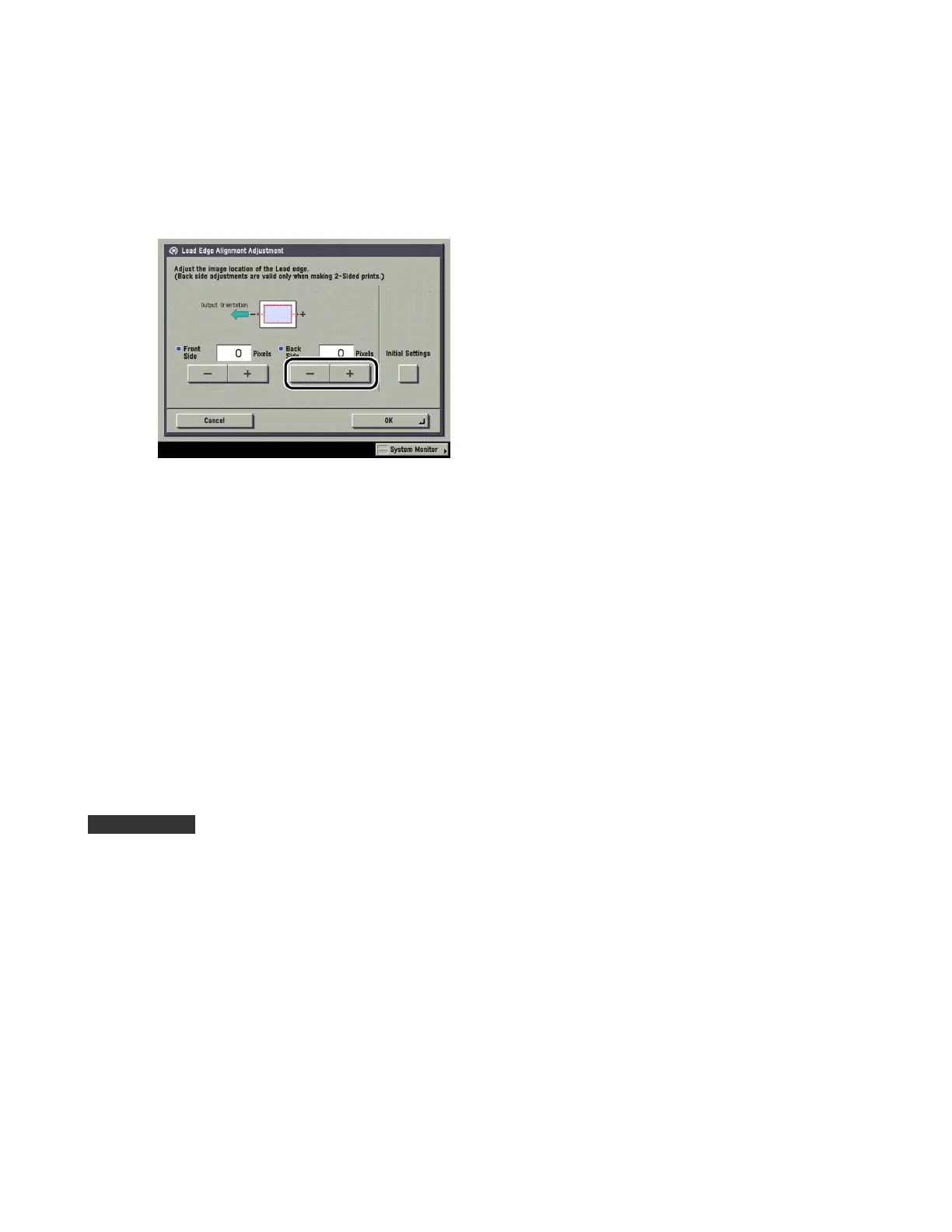 10 Press [-] or [+] for <Back Side> to input the number of pixels to shift the image.