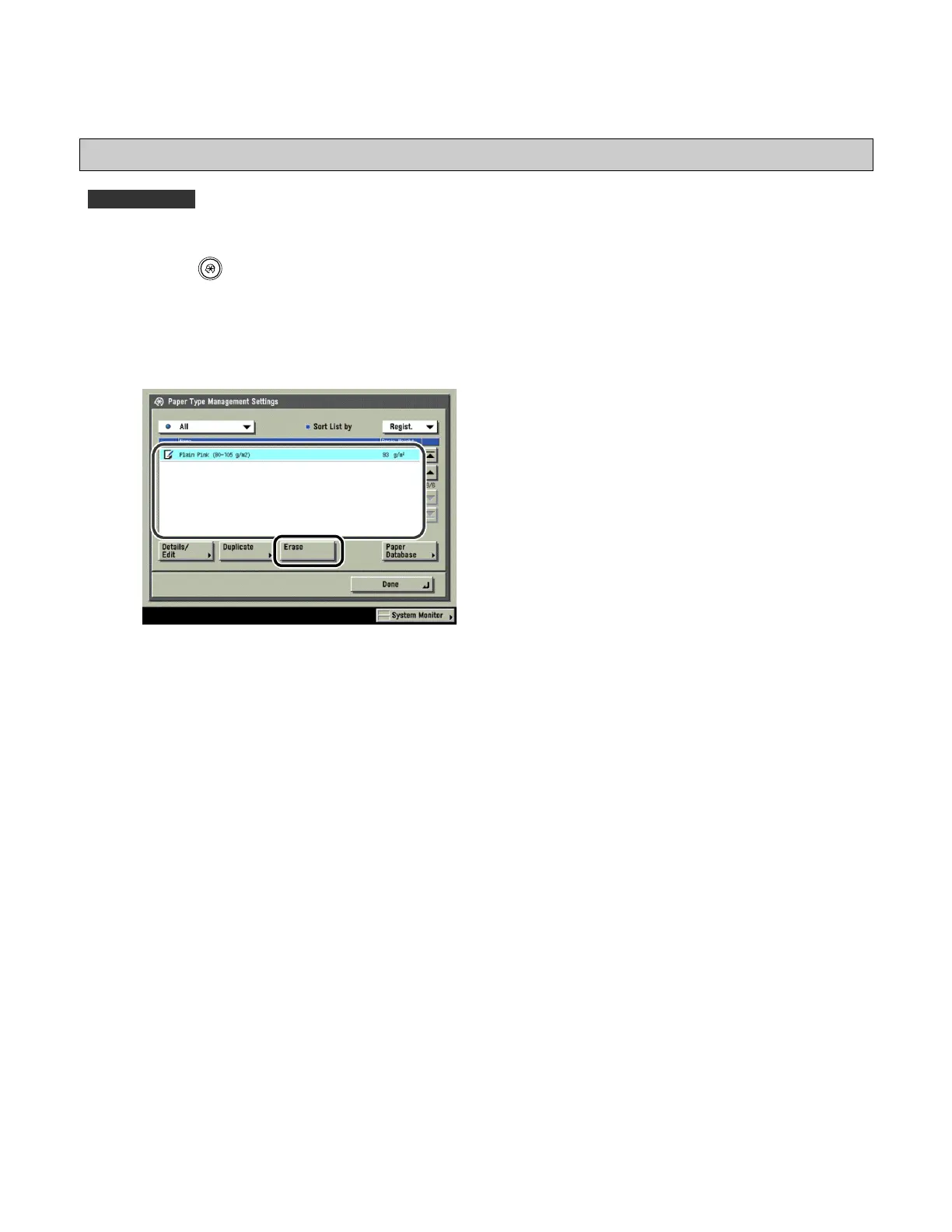 1 Press (Additional Functions) [System Settings] [Paper Type Management