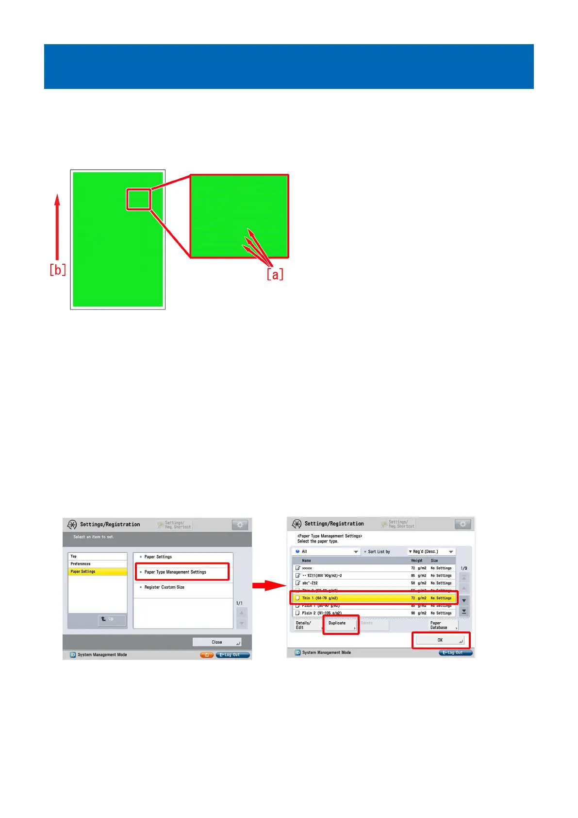 2) Go to Select Settings/Registration > Paper Settings > Paper Type Management Settings, select an appropriate paper type