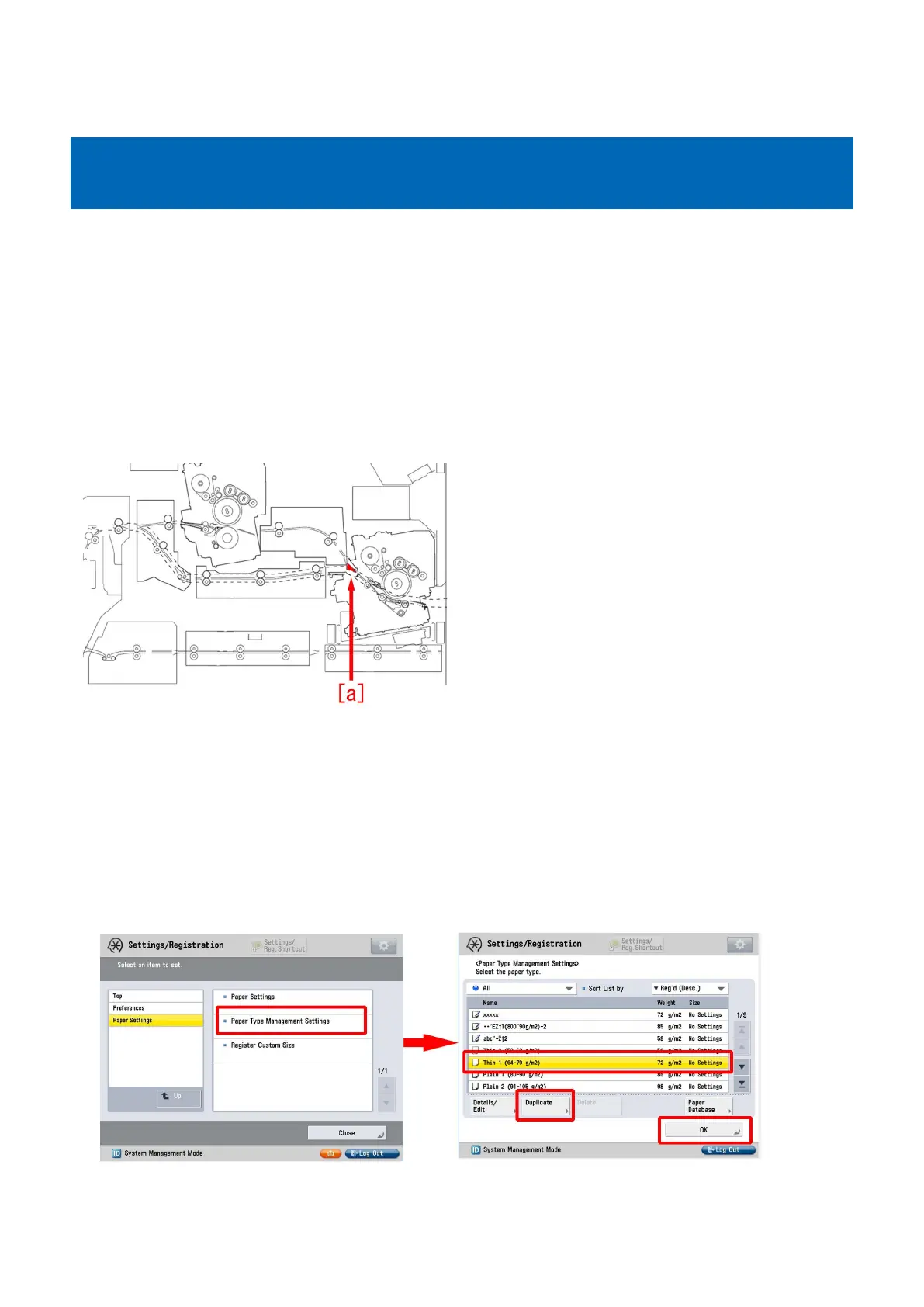 2) Go to Select Settings/Registration > Paper Settings > Paper Type Management Settings, select an appropriate paper type