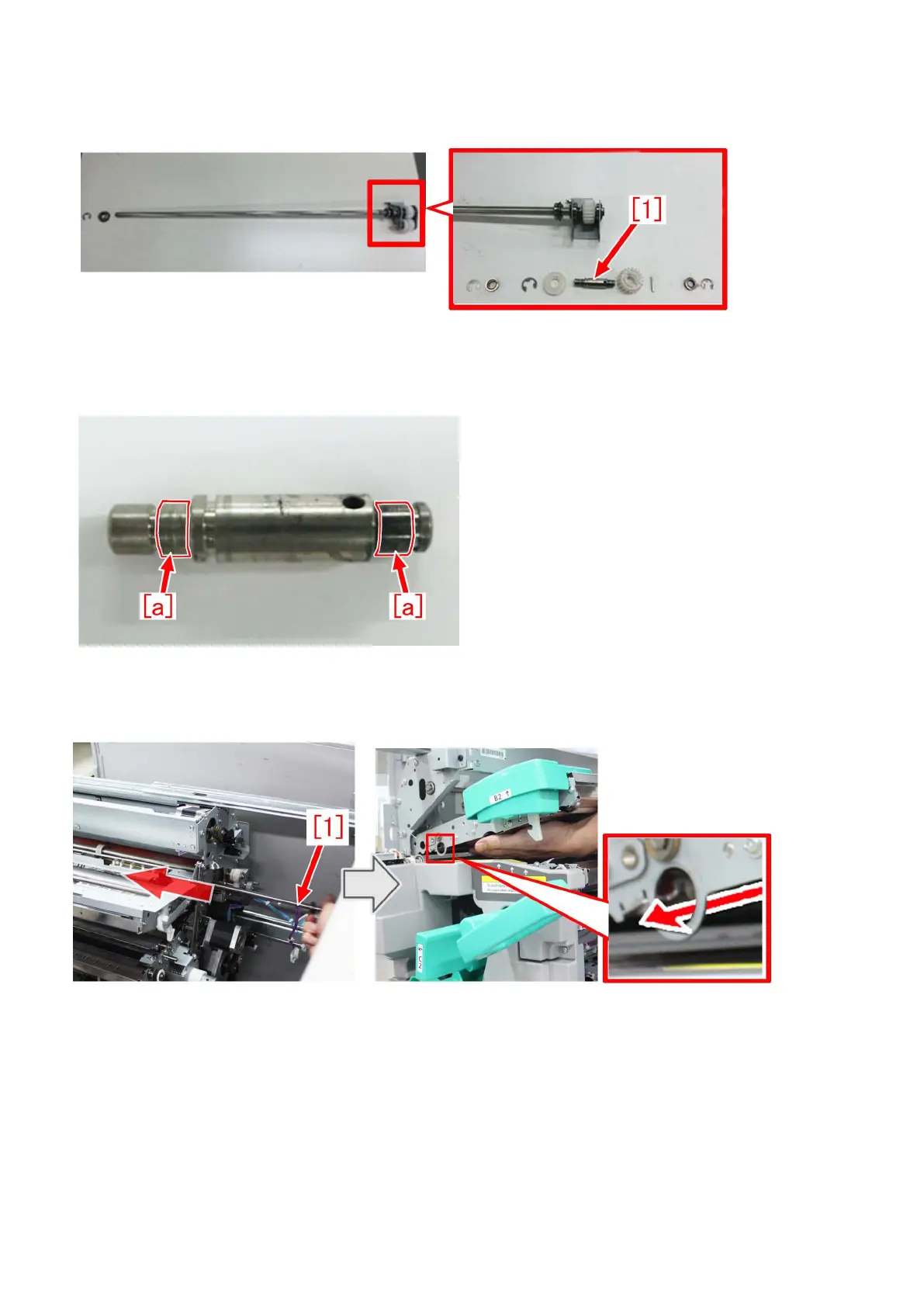 c-8) Insert the drive swing plate and the shaft [1] assembled in the step c-7) from the rear side of the delivery upper guide unit